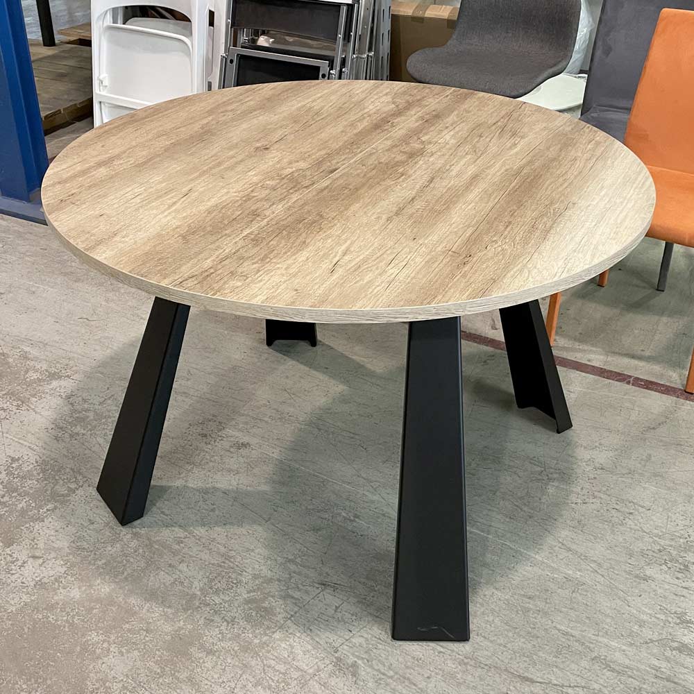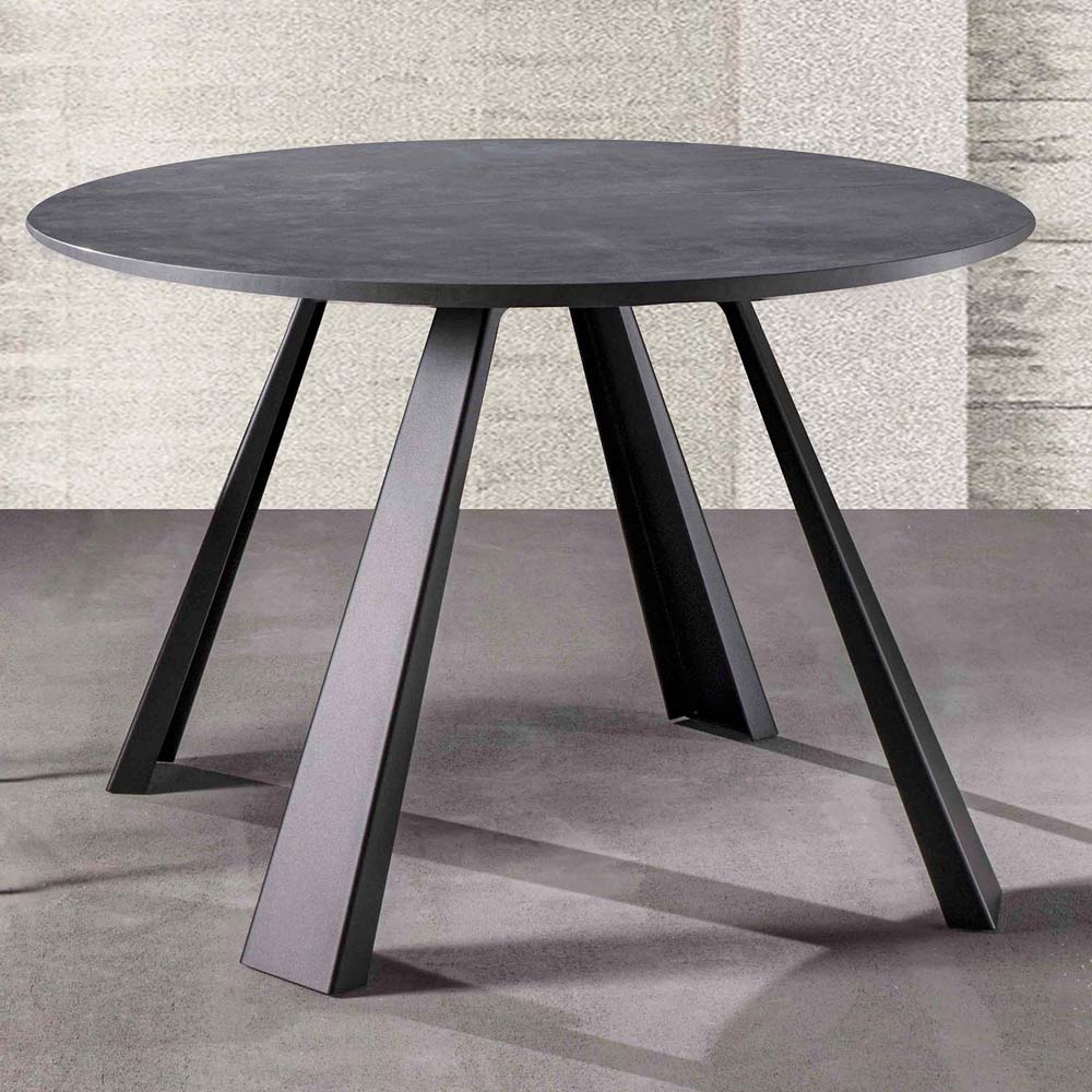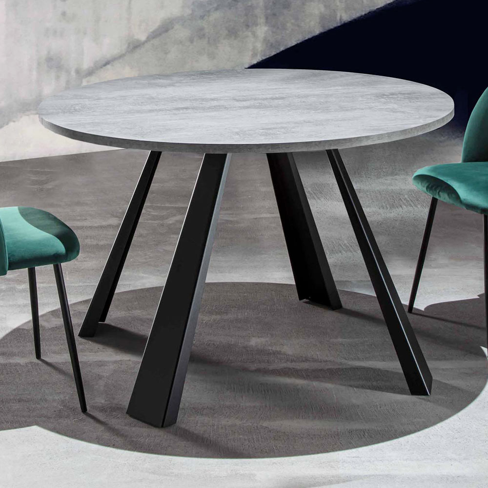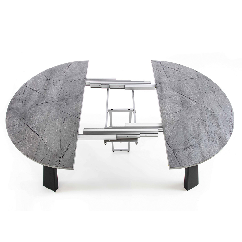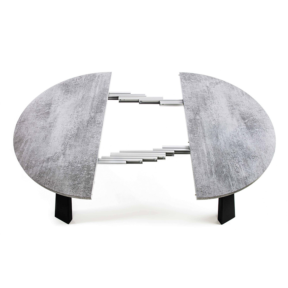 Tavolinë e rrumbullakët e ngrënies e zgjatur deri në 370 cm në dru melamine dhe metal.