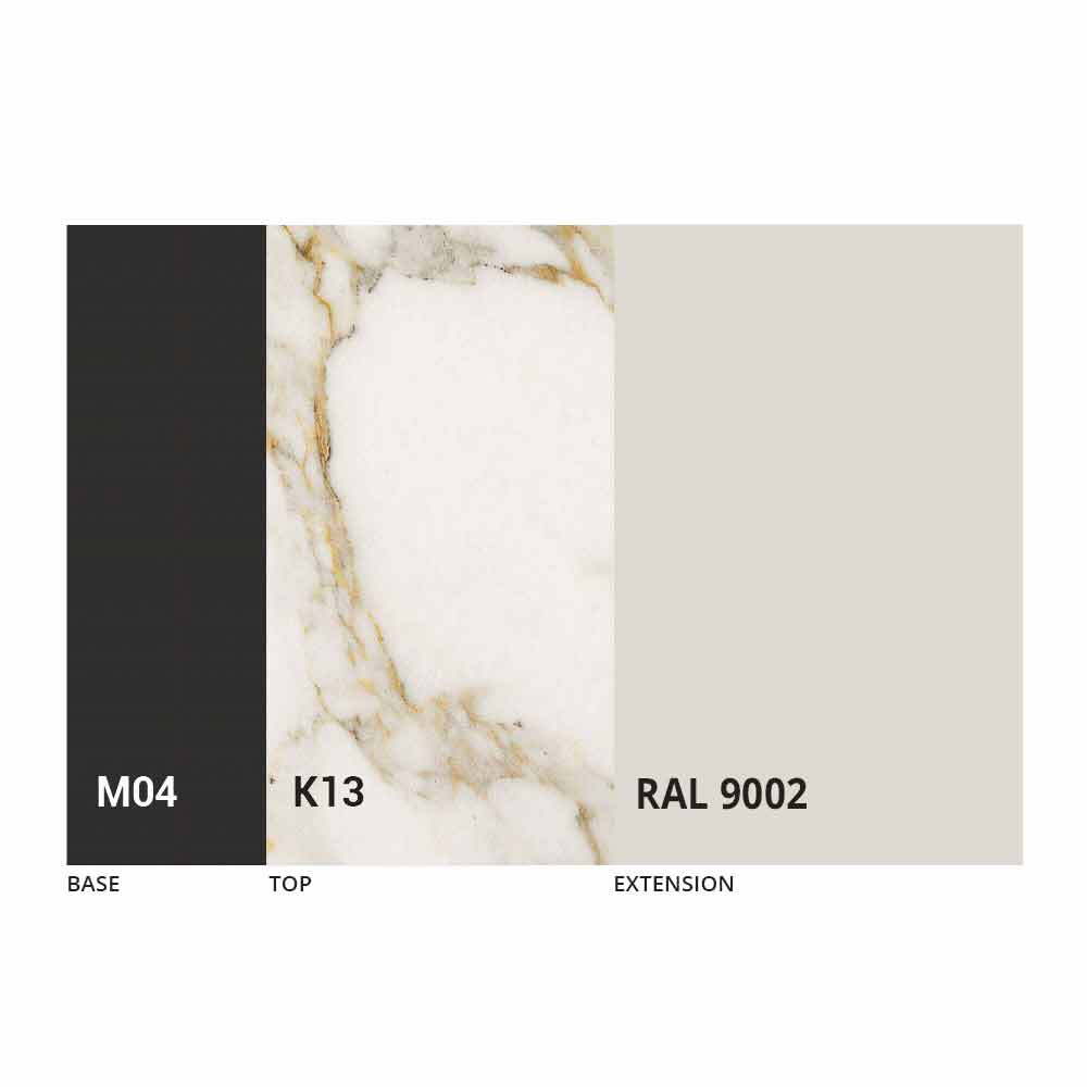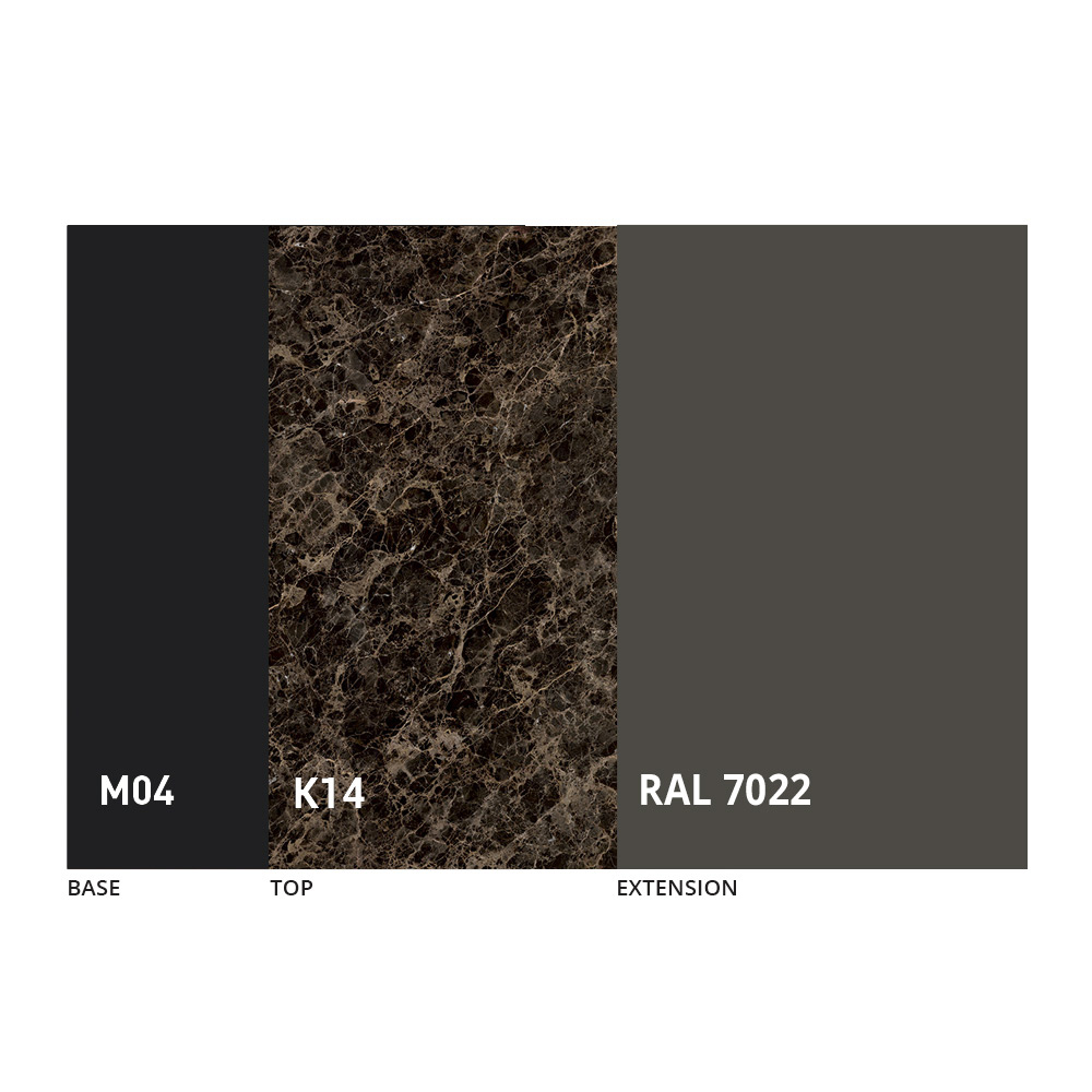 Pjesa e sipërme dhe baza e tavolinës mund të personalizohen me përfundime të ndryshme të mostrave. Për informacion, na kontaktoni duke përdorur formularin "