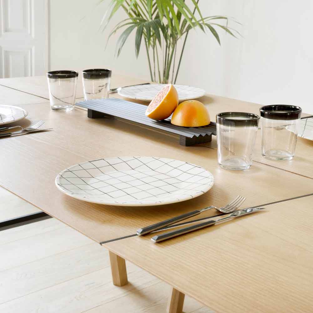 Tavolinë moderne ngrënie në dru hiri të ngurtë me majë të rimeso.