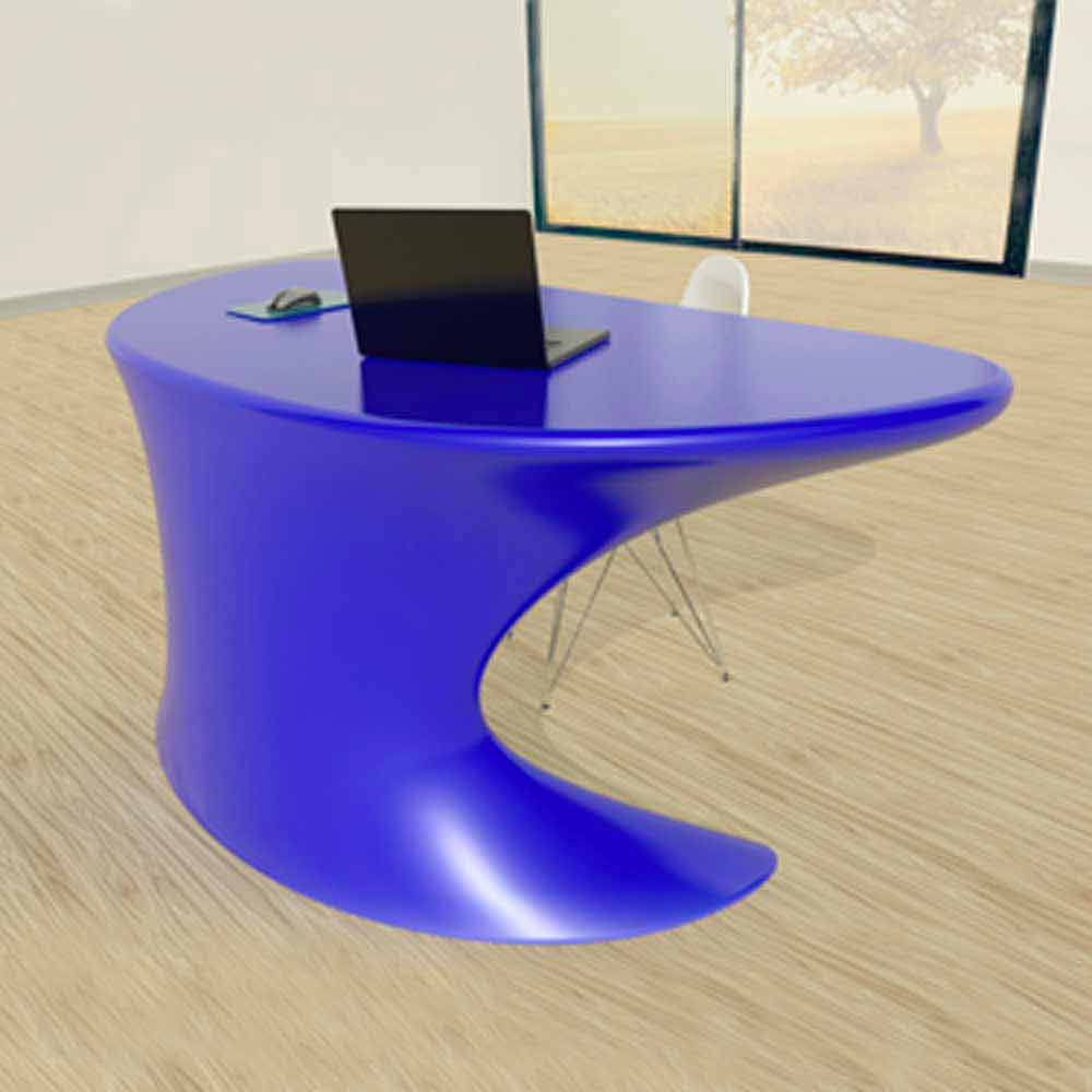 E bute dhe e rreme. Materiali: Sipërfaqja e ngurtë; Linjat e buta dhe të përkulura janë tiparet dalluese të kësaj tavoline me një formë tërheqëse dhe vendimtare. Një dizajn mbështjellës dhe një sipërfaqe e madhe pune në shërbim të atyre që duan të punojnë në komoditet të plotë pa sakrifikuar stilin dhe elegancën. Struktura monolit e kombinuar me karakteristikat e rezistencës së materialit dhe trajtimi i sipërfaqes kundër gërvishtjeve garantojnë qëndrueshmërinë dhe funksionalitetin e tij. I personalizueshëm në ngjyra, ai mund të vendoset lehtësisht në ambiente të shumta si studime, zyra, dyqane. Finiturë me shkëlqim. E disponueshme në variacione të ndryshme ngjyrash.