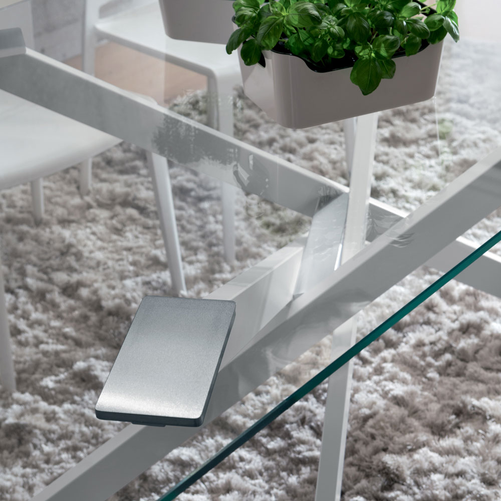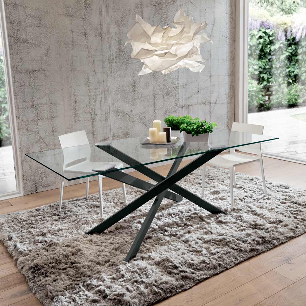 Tavolinë kuzhine e prodhuar në Itali me majë xhami tepër të pastër dhe bazë metalike të veshur me pluhur epoksid. Një stil i thjeshtë dhe i gjithanshëm që di të përshtatet me çdo situatë moderne të arredimit falë linjave të tij të matura dhe diskrete . Ajo që e bën unik dizajnin e saj është veçantia e këmbëve të ndërthurura të cilat i japin një ndjenjë harmonie tavolinës dhe në të njëjtën kohë rrisin vlerën dhe personalitetin e saj. Falë përdorimit të xhamit, një material me elegancë të përjetshme, rezultati përfundimtar do të përfaqësojë kombinimin perfekt të modernitetit dhe stilit të rafinuar , duke u dëshmuar të jetë një zgjidhje veçanërisht e përshtatshme për dhomat e ngrënies apo kuzhinat me orendi bashkëkohore, në të cilat do të fitojë çdo vëmendje. duke u bërë protagonist i vërtetë i dhomës.