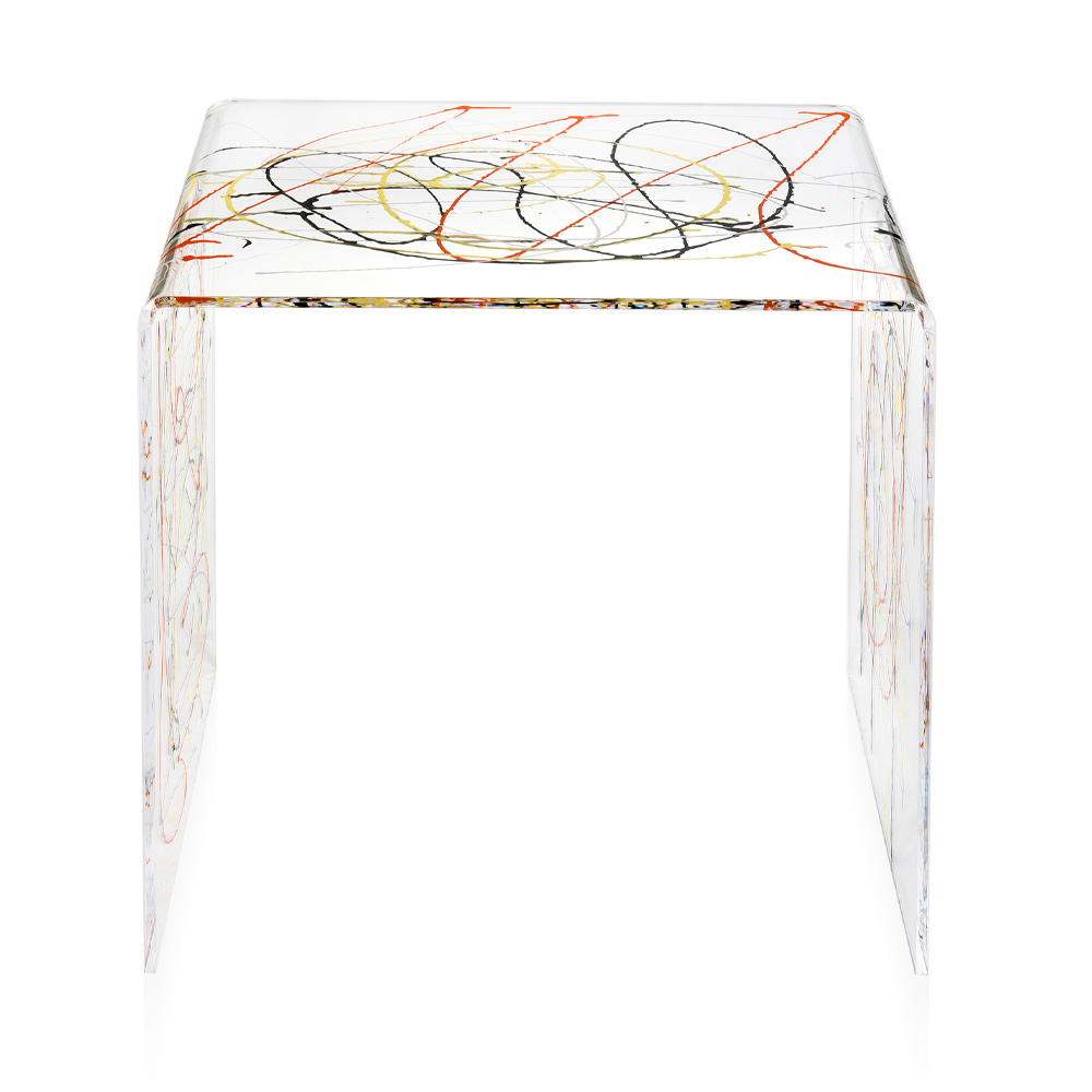 Komodinë në pleksiglas transparent me bojë shumëngjyrëshe, 2 përmasash prodhim Italie.