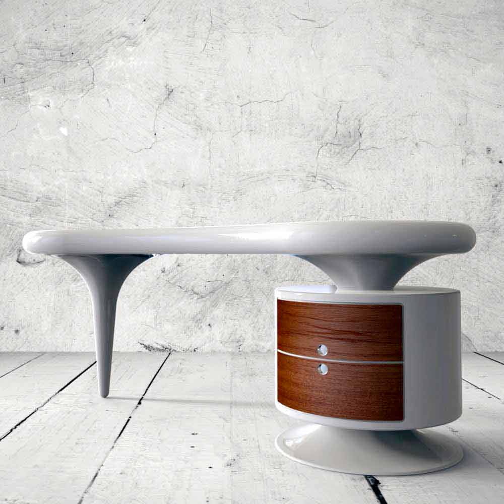 Një prekje retro. Materiali: Sipërfaqja e ngurtë; dhe druri. Koni karakterizon formalisht tavolinën e punës dhe, ndërsa nga njëra anë mbështet lehtë majën e formësuar, nga ana tjetër bëhet elementi mbajtës i komodisë. Kontrasti material i dhënë nga moderniteti i Sipërfaqes së Ngurtë; me “ngrohtësinë” e drurit dhe format e rrumbullakosura i japin një prekje retro tavolinës së Bean-it, duke iu përshtatur çdo lloj ambienti. Fund me llak me shkëlqim. E disponueshme në variacione të ndryshme ngjyrash.