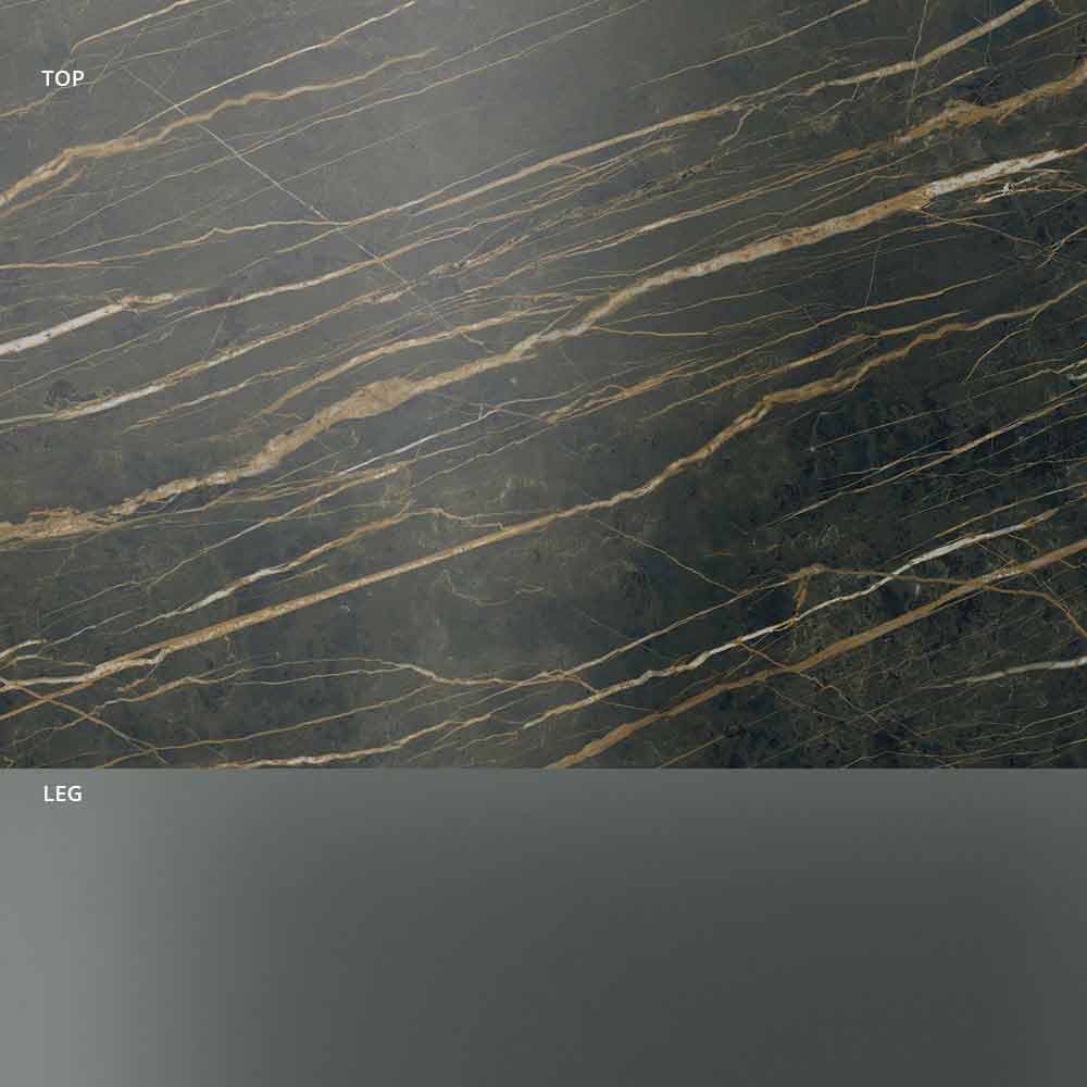 Bërë nga qelqi i tymosur për bazën dhe një majë qeramike noir desir , është një pjesë mobiljesh e punuar me dorë në Itali me materiale me cilësi të lartë ideale për zonën e banimit.