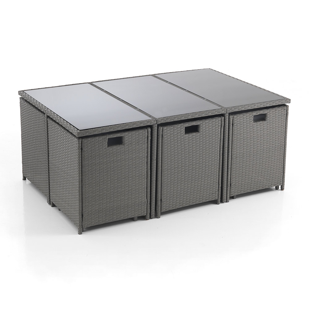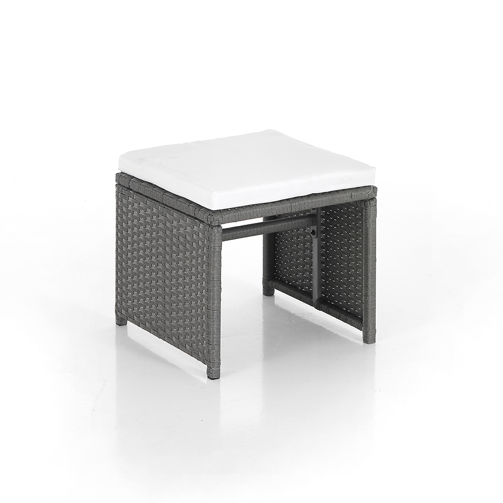 Ky grup modular kopshti është thelbi i shkathtësisë dhe efikasitetit të hapësirës . I projektuar për t'iu përshtatur çdo ambienti të jashtëm, kompleti përfshin një tavolinë elegante dhe ndenjëse të përshtatshme që kombinohen në një rregullim kompakt dhe të parregullt kur nuk janë në përdorim, duke u shndërruar në një skulpturë dizajni bashkëkohor .