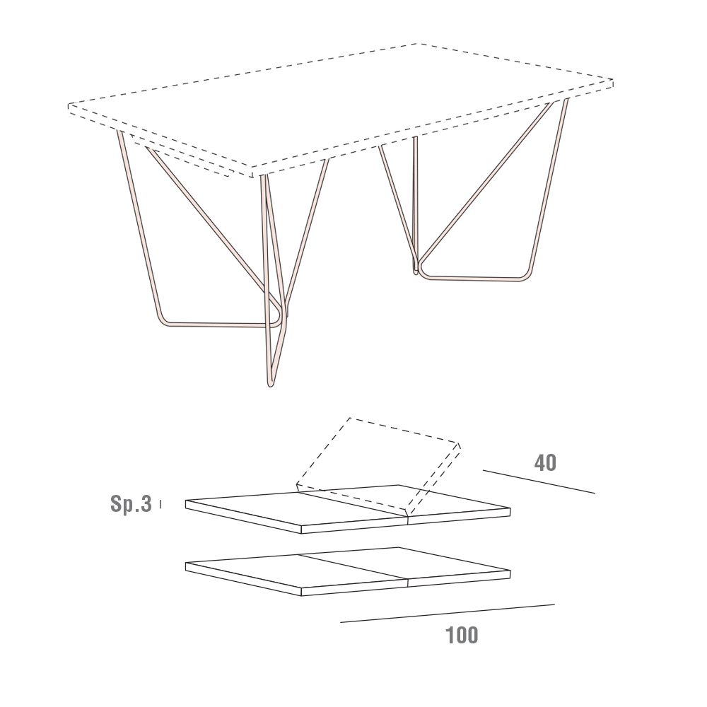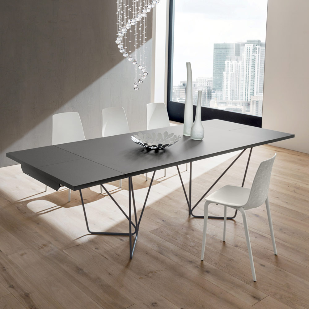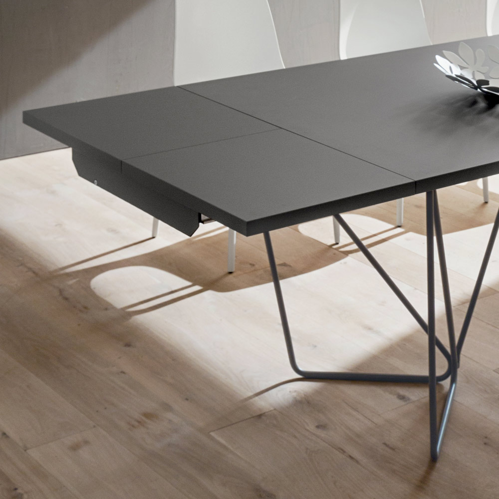 dy zgjatimeve anësore (40 cm secila) që përputhen me pjesën e sipërme me një mekanizëm hapjeje të palosshme. Në këtë mënyrë tavolina bëhet një zgjidhje mobilimi veçanërisht e përshtatshme për ata që duan të organizojnë dreka dhe darka duke pritur miq dhe të afërm për momente të mrekullueshme në shoqëri, duke u kthyer për të zënë një hapësirë më të vogël pasi të mbyllet. Ajo që rrit cilësinë dhe vlerën e tavolinës është zgjedhja e përdorimit të fenix, një material i cili nëpërmjet përdorimit të