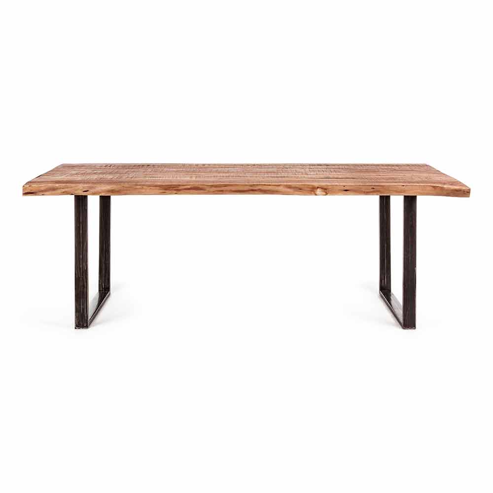 Tavolinë ngrënie në stilin industrial me majë druri akacie dhe bazë çeliku.