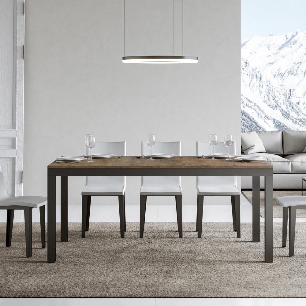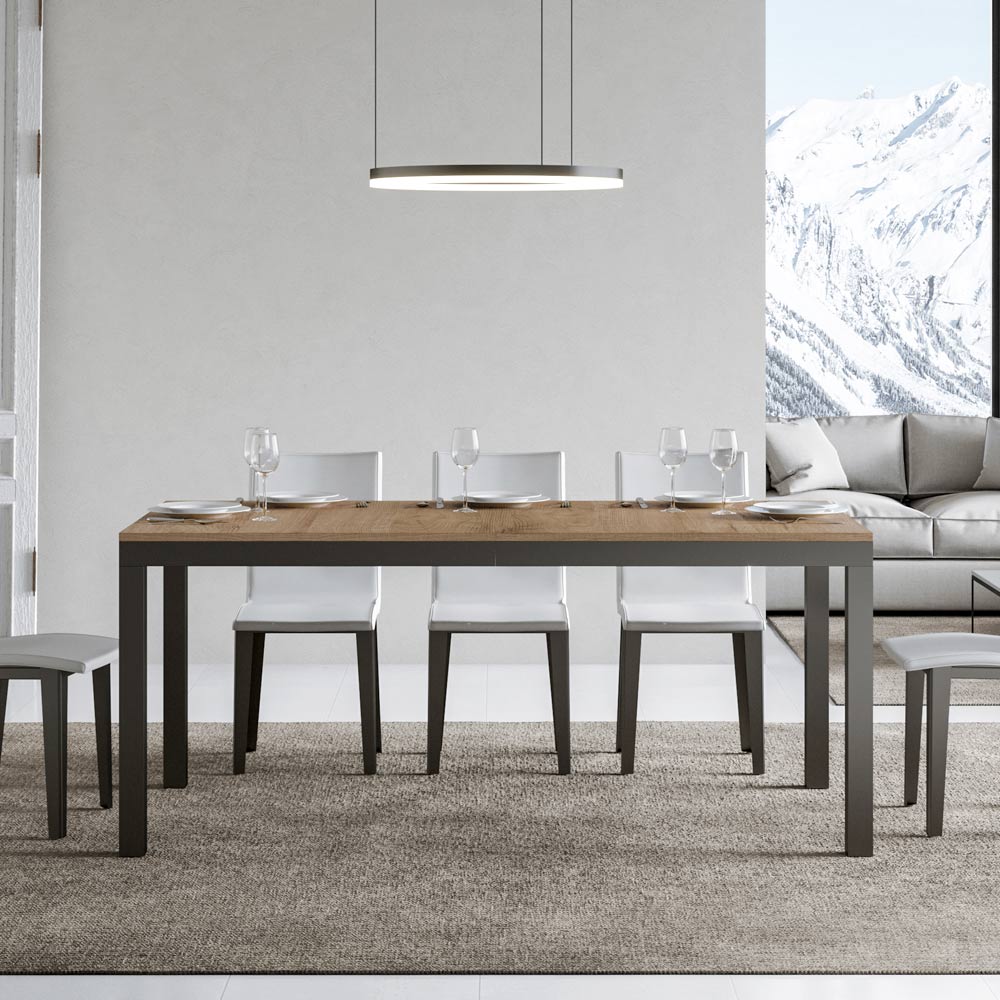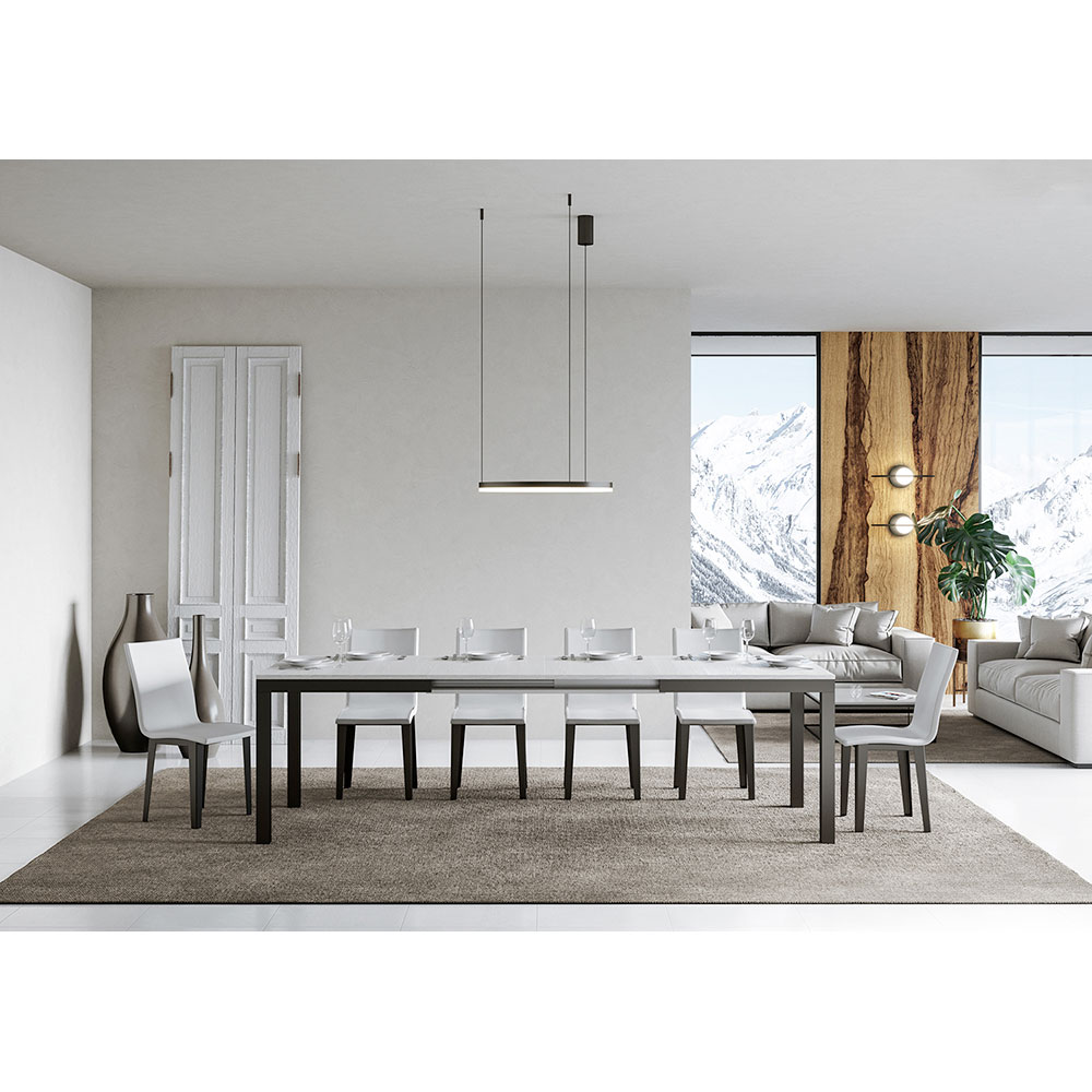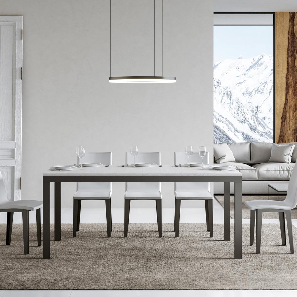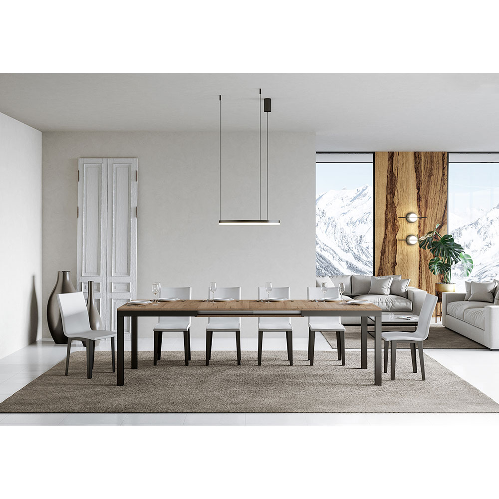 Magjia e vërtetë e kësaj tryeze, megjithatë, qëndron në shkathtësinë e saj të shtrirë . I projektuar për t'u përshtatur në mënyrë dinamike me nevojat e jetesës moderne, ai mund të zgjerohet lehtësisht për të akomoduar mysafirë të tjerë, duke e bërë atë ideal për argëtimin ose akomodimin e familjeve në rritje. Finitura cilësore dhe ndërtimi i fortë premtojnë qëndrueshmëri dhe forcë, duke e bërë këtë tryezë një investim afatgjatë për shtëpinë tuaj.