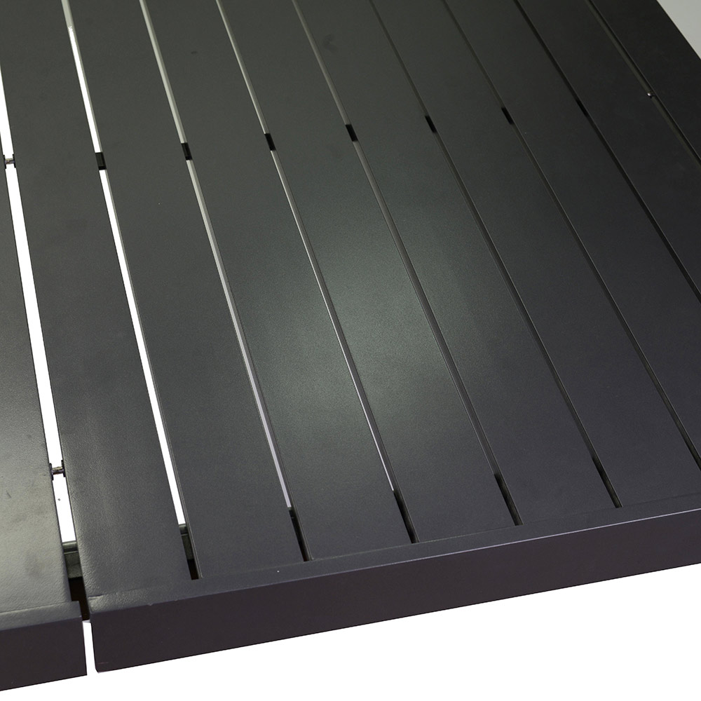 Konstruksioni i fortë i aluminit siguron qëndrueshmëri dhe rezistencë ndaj motit, duke ruajtur pamjen e tij të përsosur sezon pas sezoni. Përfundimi shton një prekje elegance dhe moderniteti, duke e bërë atë një mobilje të gjithanshme dhe tërheqëse.