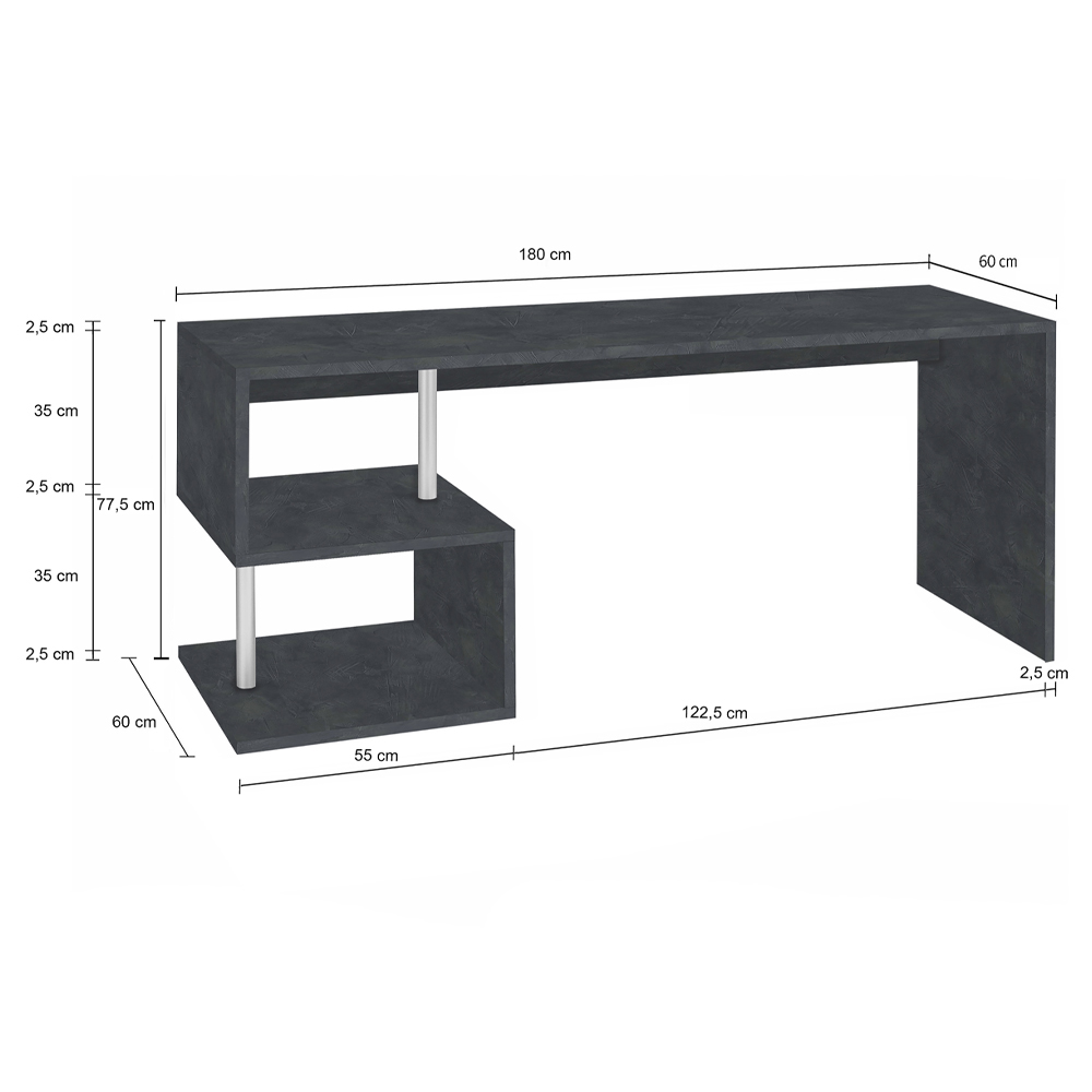 dizajni i saj modern dhe purist me një raft anësor praktik në formën e një "S" me 2 ndarje të hapura që i jep strukturës një pamje të veçantë dhe bashkëkohore.