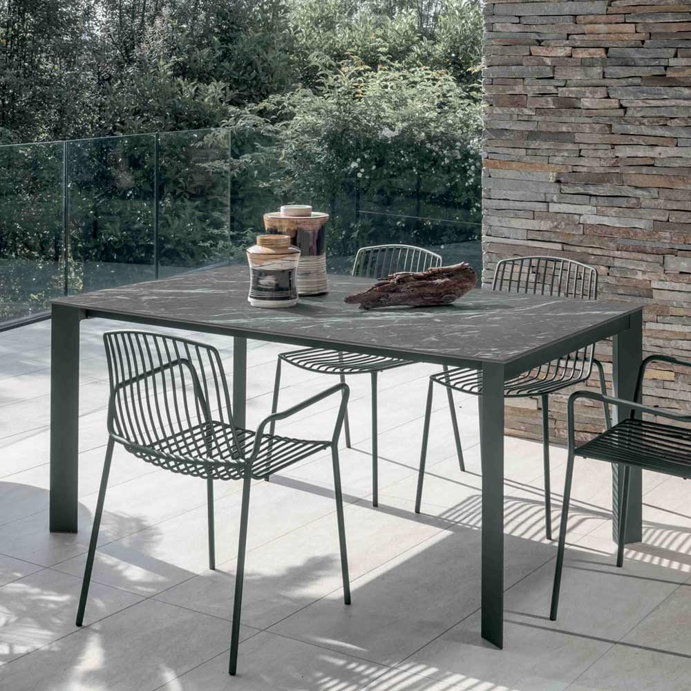 Korniza e hollë por e fortë metalike siguron stabilitet dhe qëndrueshmëri, duke e bërë atë ideal për përdorim të përditshëm. E përkryer për çdo rast, nga darkat familjare deri tek takimet me miqtë, kjo tryezë ofron dimensione të bollshme për të akomoduar rehat të gjithë mysafirët tuaj.