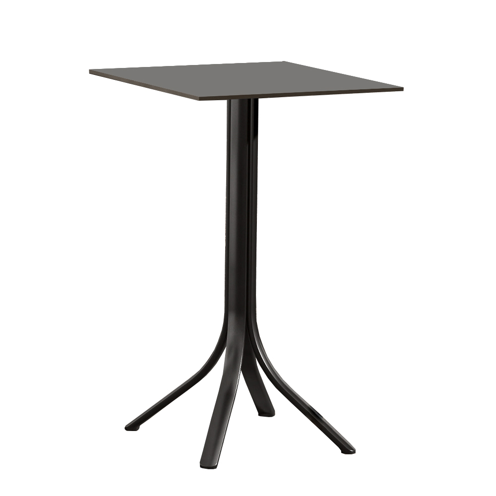 Tavolinë me shirita të lartë për ambiente të jashtme me dizajn 4 këmbë në alumin dhe majë katrore në hpl në 2 përfundime, prodhuar në Itali.