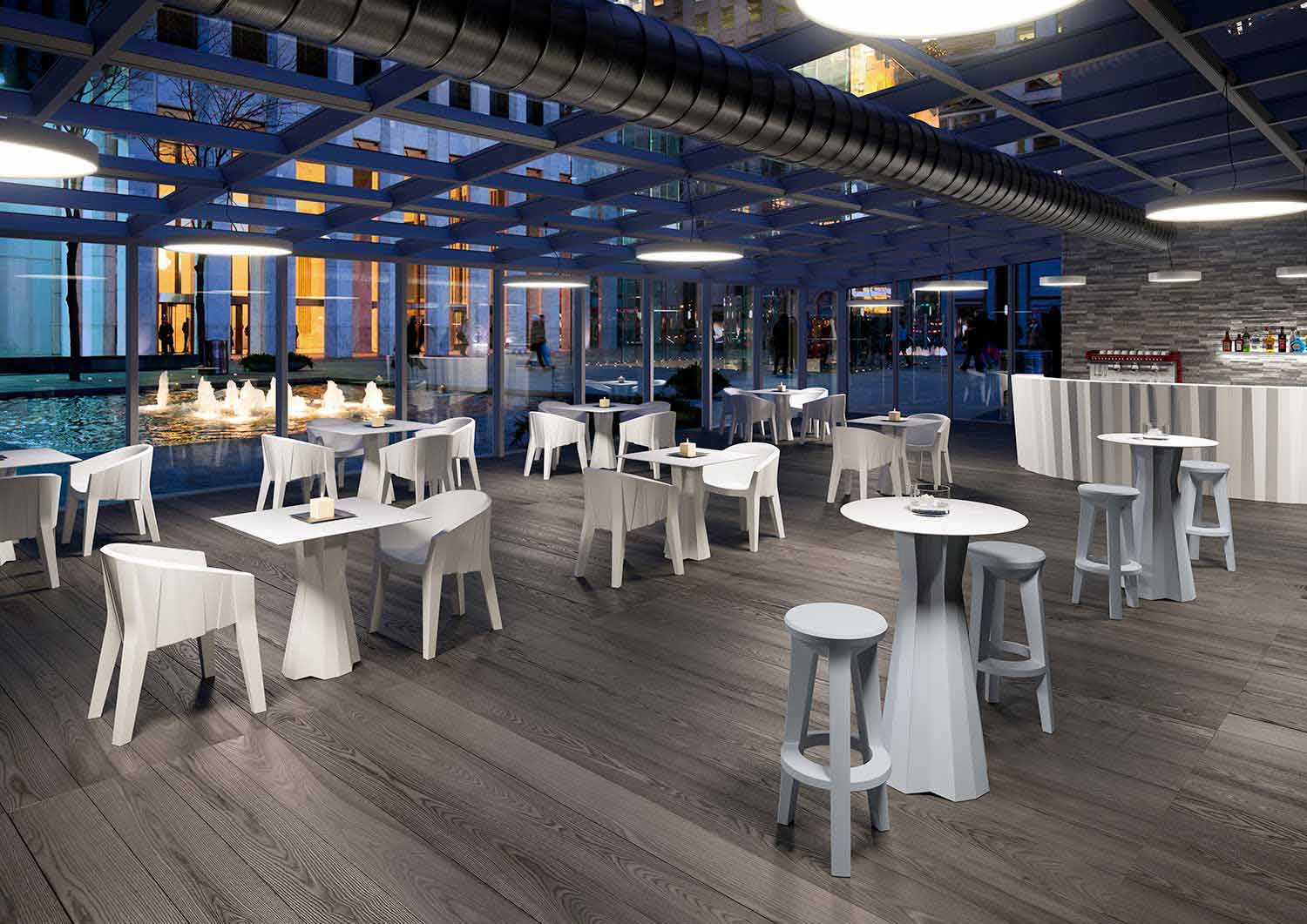 Kjo tryezë nënatyrë prodhohet tërësisht në Itali me materiale të zgjedhura ideale për të siguruar një produkt përfundimtar me cilësi të lartë. Pjesa e sipërme është bërë nga HPL e zezë ndërsa struktura e saj përbëhet nga dy baza të bardha mat polietileni të cilat sigurojnë qëndrueshmëri dhe forcë të shkëlqyeshme së bashku me rezistencë ndaj nxehtësisë, diellit dhe goditjeve. Ideale për të kompletuar mobilimin e mjediseve me një dizajn modern dhe të rafinuar që kanë nevojë për një prekje të personalitetit dhe stilit.