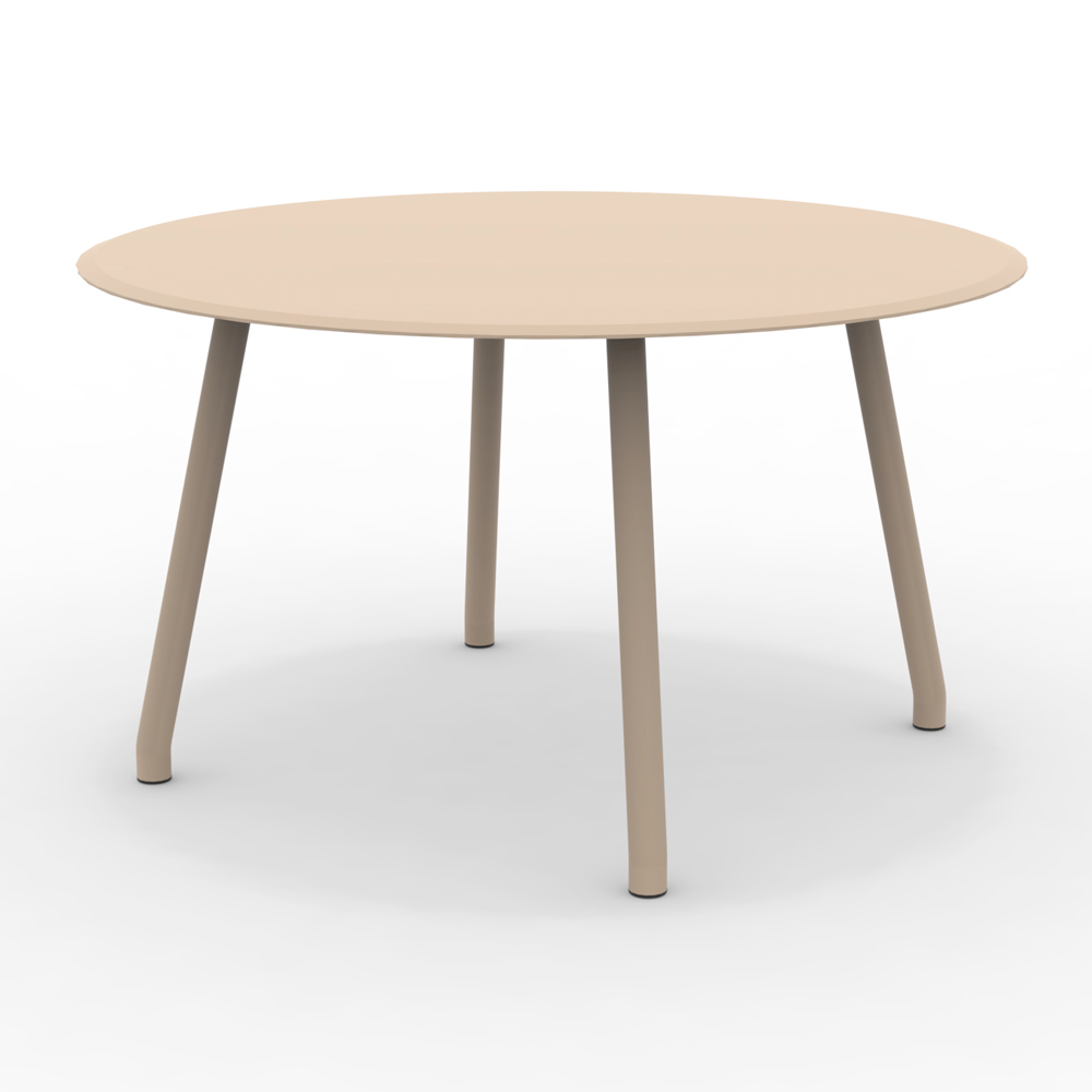 Pjesa e sipërme e saj e rrumbullakët ofron një sipërfaqe të madhe mbështetëse, ideale për të mirëpritur miqtë dhe familjen gjatë momenteve të këndshme jashtë. Këmbët pak të pjerrëta japin stabilitet dhe një prekje elegance, ndërsa dizajni minimalist përshtatet lehtësisht me çdo dekor të jashtëm.
