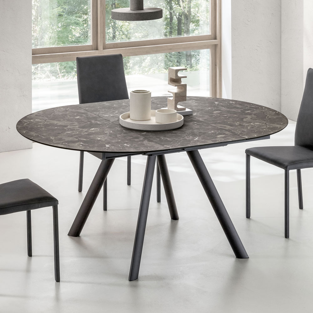 Sipërfaqja HPL i shton shkëlqim dhe rafinim ambientit, duke kujtuar venat e gurit me një sipërfaqe rezistente . Falë sistemit qendror të zgjatjes , tavolina zgjerohet lehtësisht, duke ofruar hapësirë shtesë për mysafirët ose drekat familjare, duke ruajtur një linjë harmonike edhe kur është e hapur.