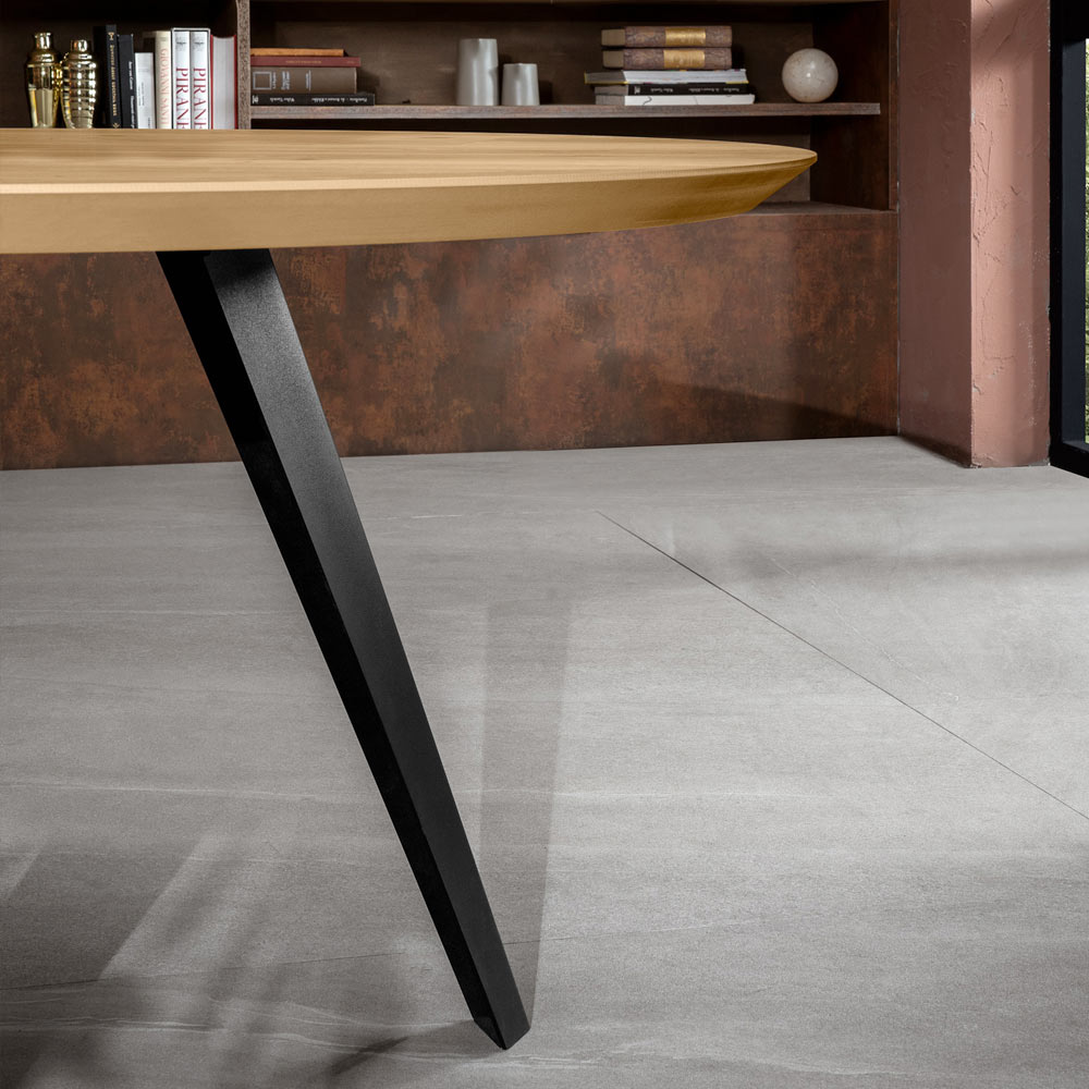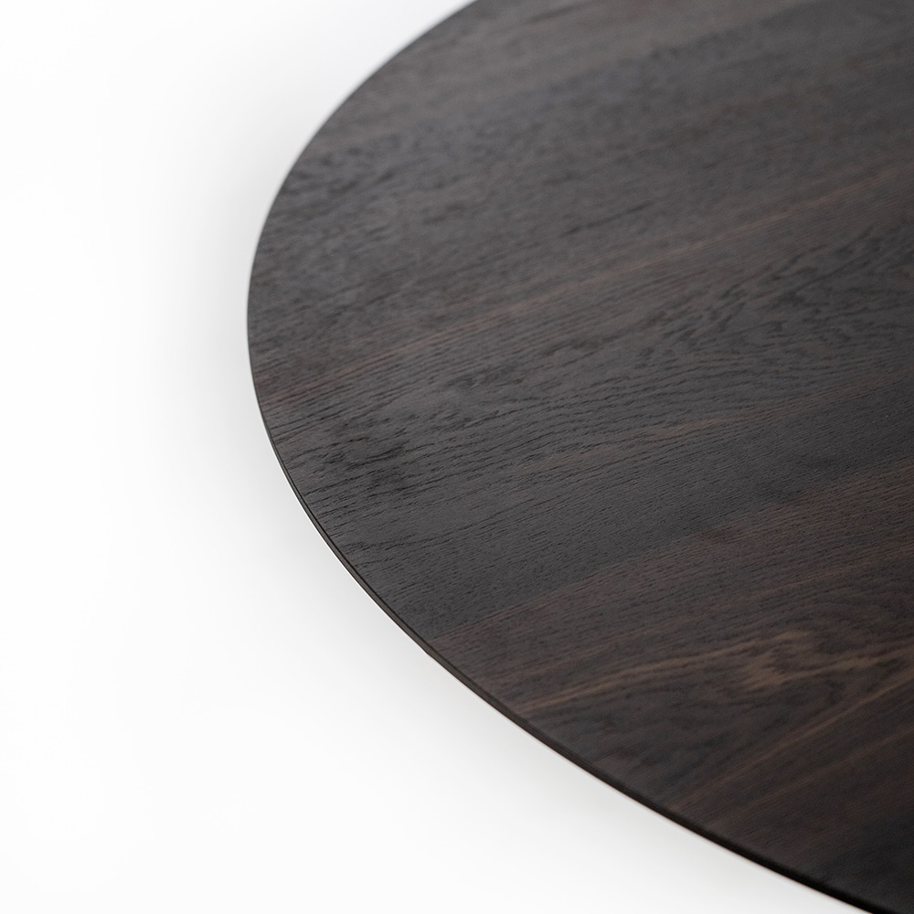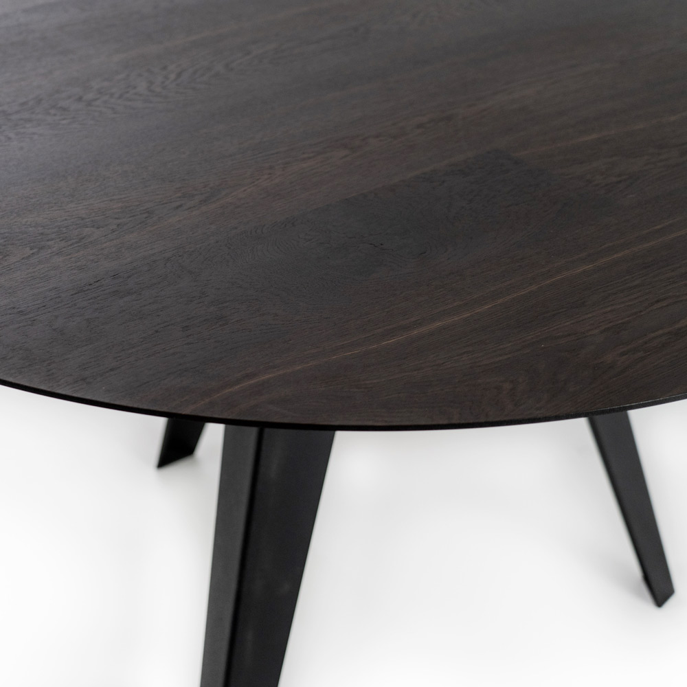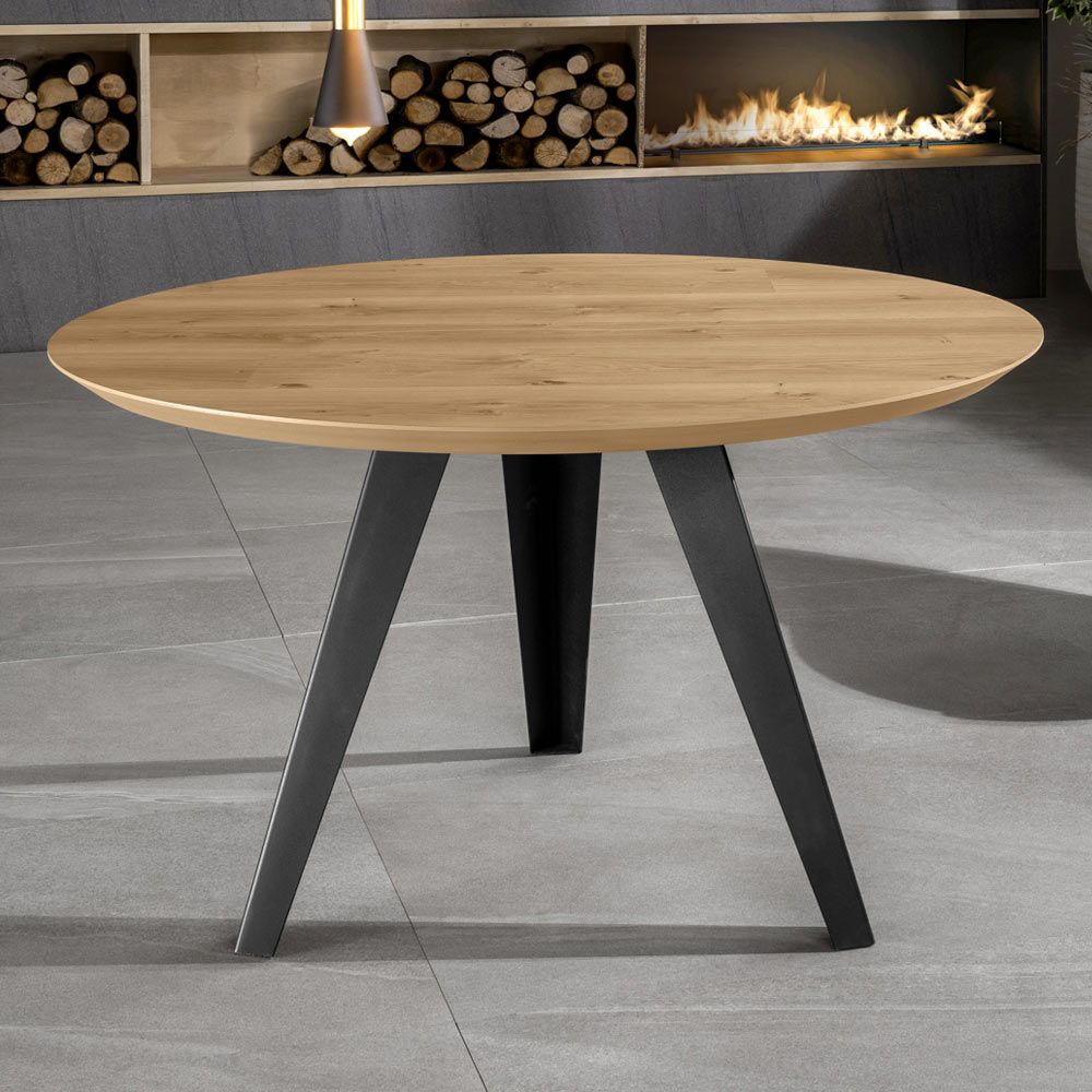 Tavolinë e rrumbullakët e ngrënies me rimeso lisi dhe metal