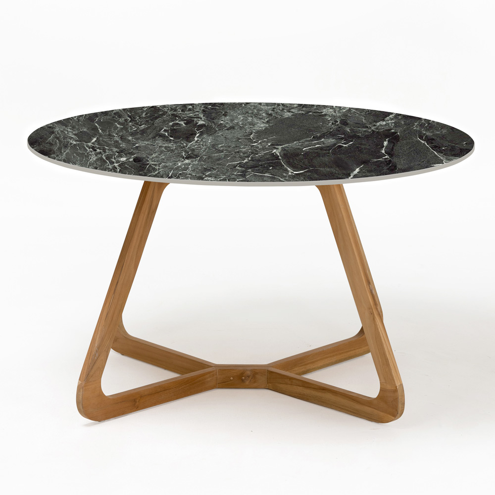 e prodhuar në Itali. Kjo tavolinë për jashtë është një shprehje e vërtetë e stilit dhe natyrës. Kjo mobilje e jashtëzakonshme kombinon një bazë druri me një sipërfaqe qeramike që imiton bukurinë e mermerit Verde France, i njohur për ngjyrën e tij të gjelbër të errët të ndërprerë nga venat e bardha dhe gri që krijojnë një efekt vizualisht të pasur dhe të sofistikuar.
