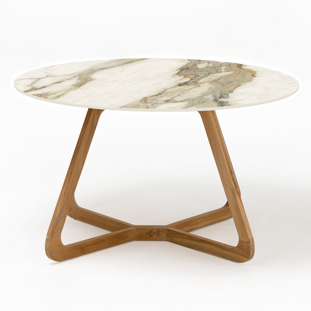 Tavolinë kopshti e rrumbullakët prej druri dhe qeramike, e prodhuar në Itali