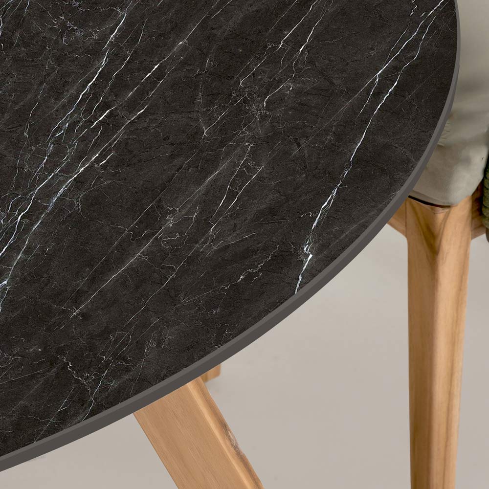 e prodhuar në Itali. Kjo tavolinë për jashtë përbën një deklaratë të vërtetë stili dhe sofistikimi për hapësirën tuaj të jashtme. Sipërfaqja prej qeramike është e frymëzuar nga mermeri luksoz Nero Marquinia , i njohur për ngjyrën e tij të zezë intensive të ndërthurur me vena të bardha delikate dhe elegante që krijojnë një kontrast vizual mbresëlënës.