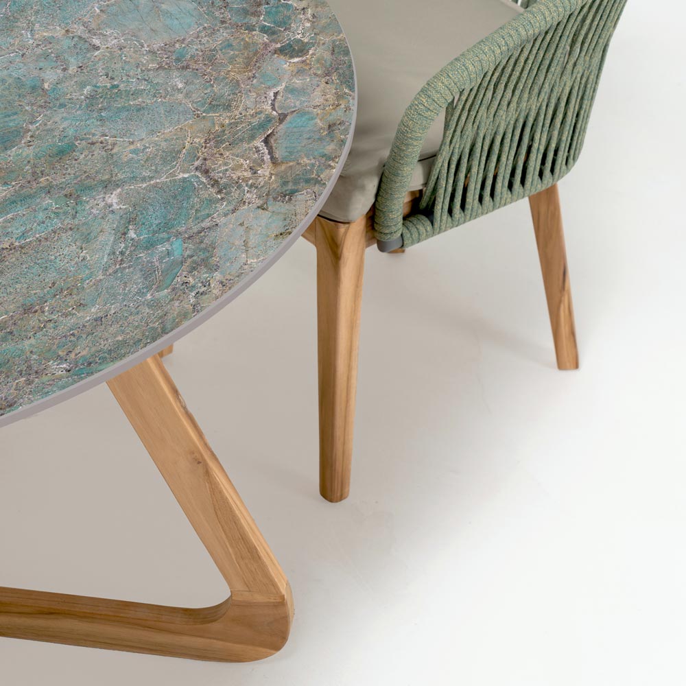 Tavolinë kopshti e rrumbullakët prej druri dhe qeramike, e prodhuar në Itali