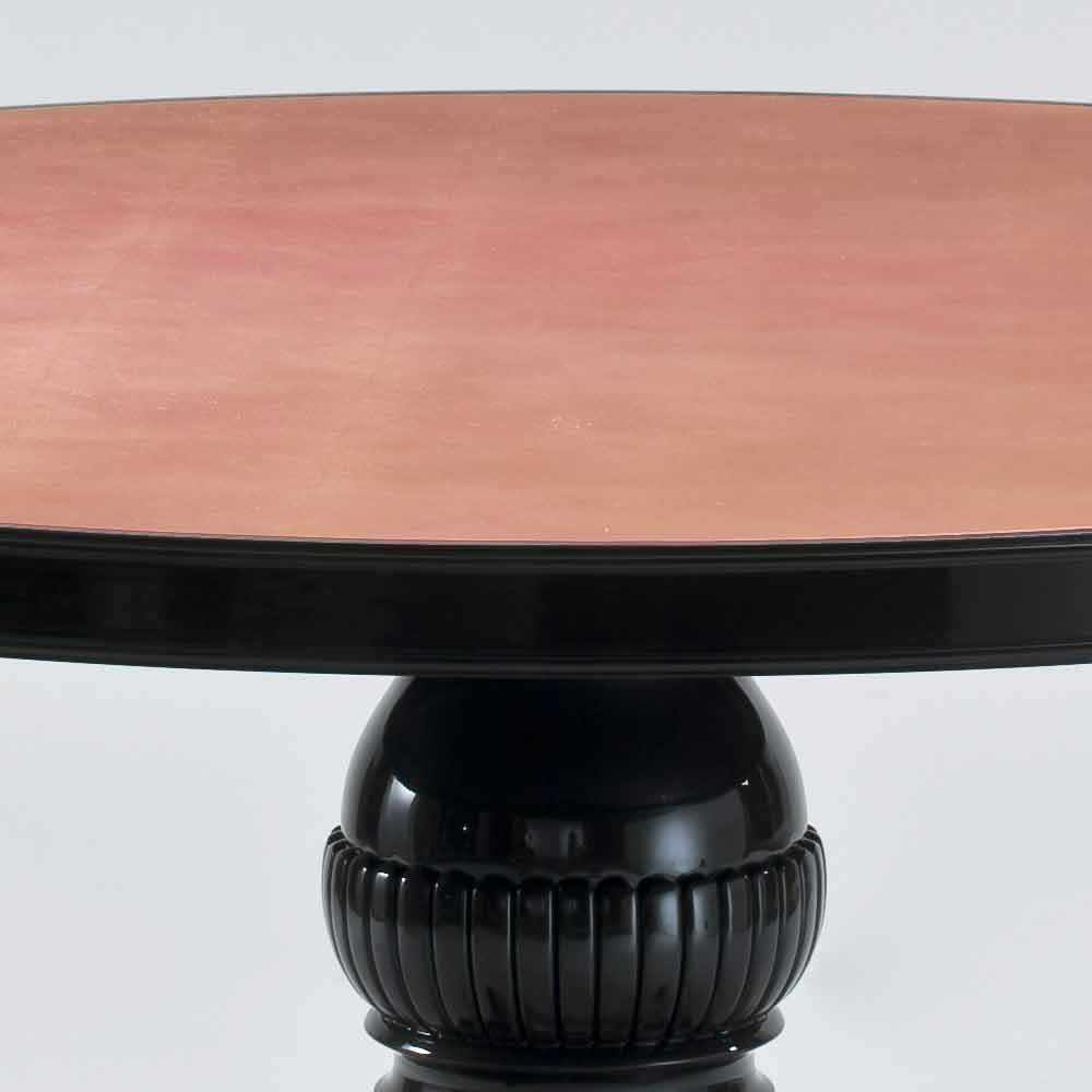 Tavolinë e rrumbullakët e dizajnit klasik në sofër të lëmuar, me diametër 150 cm, Akim Tavolinë e rrumbullakët me bazë qendrore dhe këshilla bronzi. Përfundojë sofër e lëmuar e sofrës.