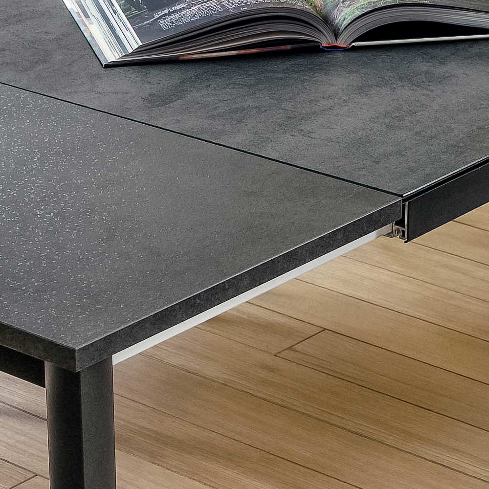 pjesa e sipërme e zgjatur që mund të arrijë një gjatësi deri në 240 cm duke e bërë atë idenë perfekte për ata që duan të organizojnë dreka dhe darka me miqtë dhe kërkojnë një zgjidhje sa funksionale aq edhe moderne që mund të krijojë një pamje të mrekullueshme. harmoni me mobiljet perreth . Për të nënvizuar estetikën e saj të shkëlqyer është sipërfaqja e laminimit, një