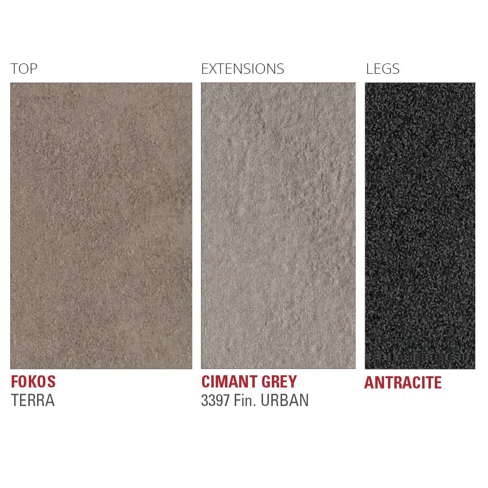 NB : pjesa e sipërme e tavolinës dhe baza janë të disponueshme në një gamë të gjerë përfundimesh të ndryshme. Vazhdimësia e kokrrës midis majës dhe zgjatimit nuk është e garantuar