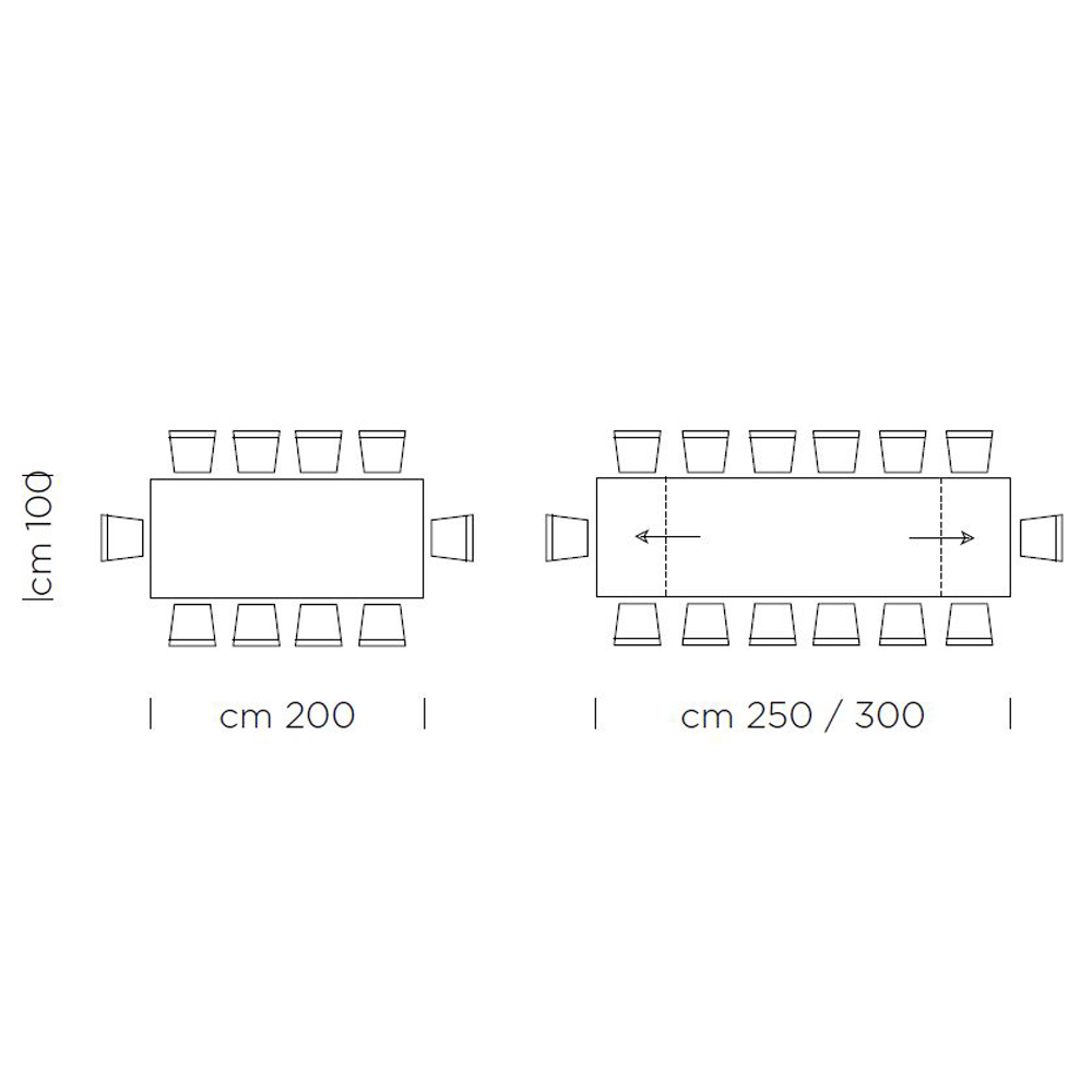 - L 200/300 x D 100 x H 75,5 cm 14 ndenjëse (2 zgjatime 50 cm).