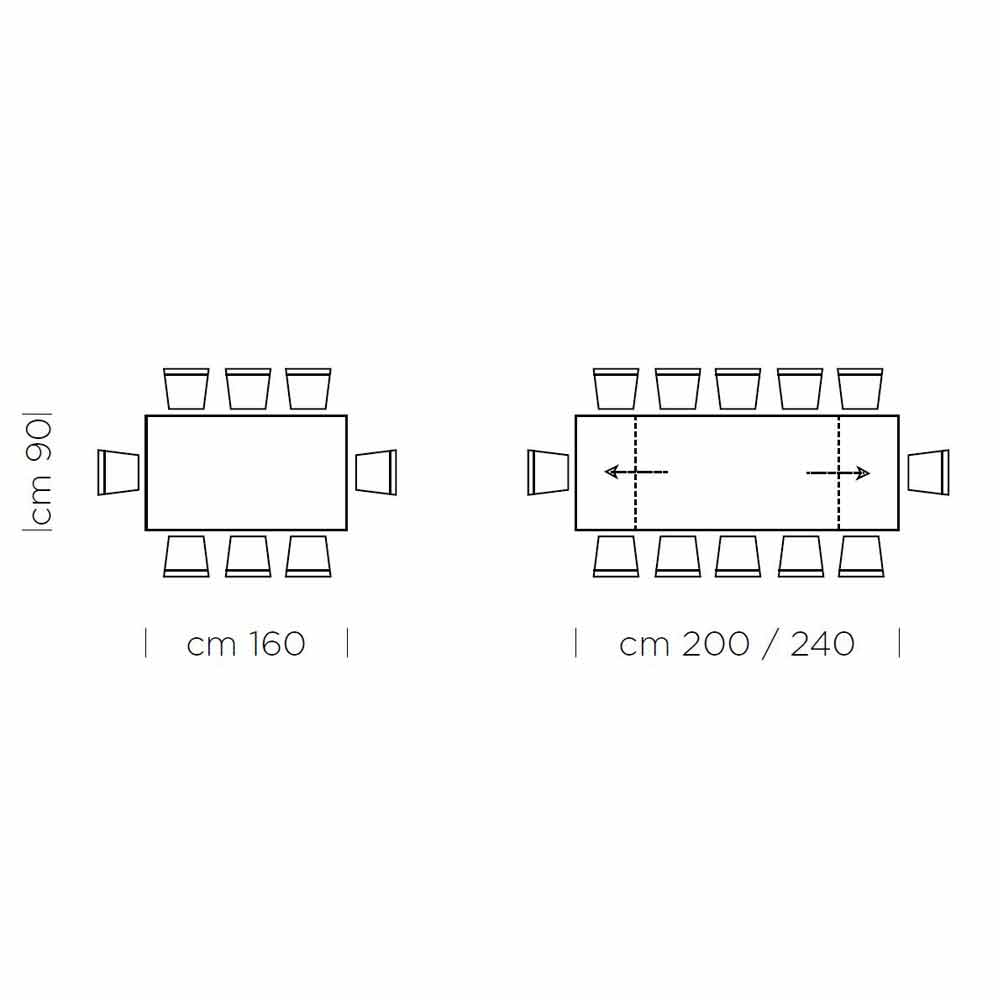 Madhësitë e disponueshme:- L 160/240 x D 90 x H 75,5 cm 12 ndenjëse (2 zgjatime 40 cm);