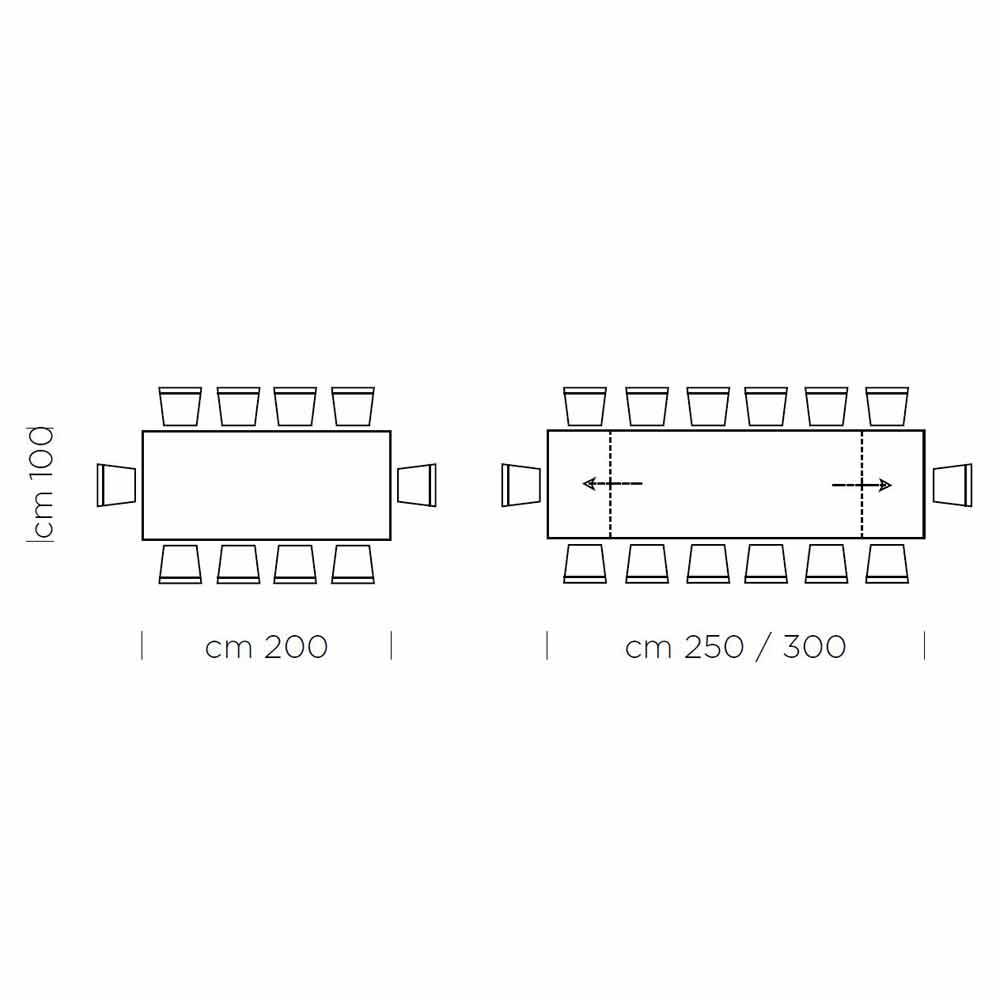 - L 200/300 x D 100 x H 75,5 cm 14 ndenjëse (2 zgjatime 50 cm).