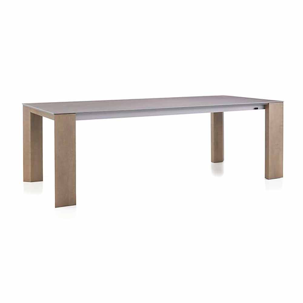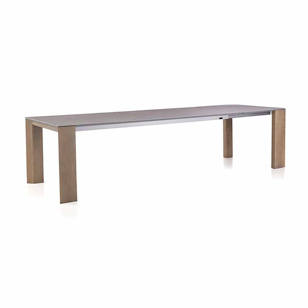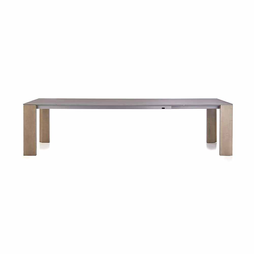 Ideja e këtij lloji të mbledhjes së tavolinave, me masa vërtet të rëndësishme deri në 300 cm në gjatësi, është të ofrojë një shërbim të zgjerueshmërisë lehtësisht të arritshëm. Eleganca është gjithashtu e pranishme në një pozicion të zgjatur. Kjo thjeshtësi në funksionin e zgjerueshmërisë bëhet e mundur përmes përdorimit të një kornize alumini me udhëzues të integruar, duke kombinuar materiale fisnike tradicionale si druri dhe qeramika përmes një modeli bashkëkohor që zgjat me kalimin e kohës.