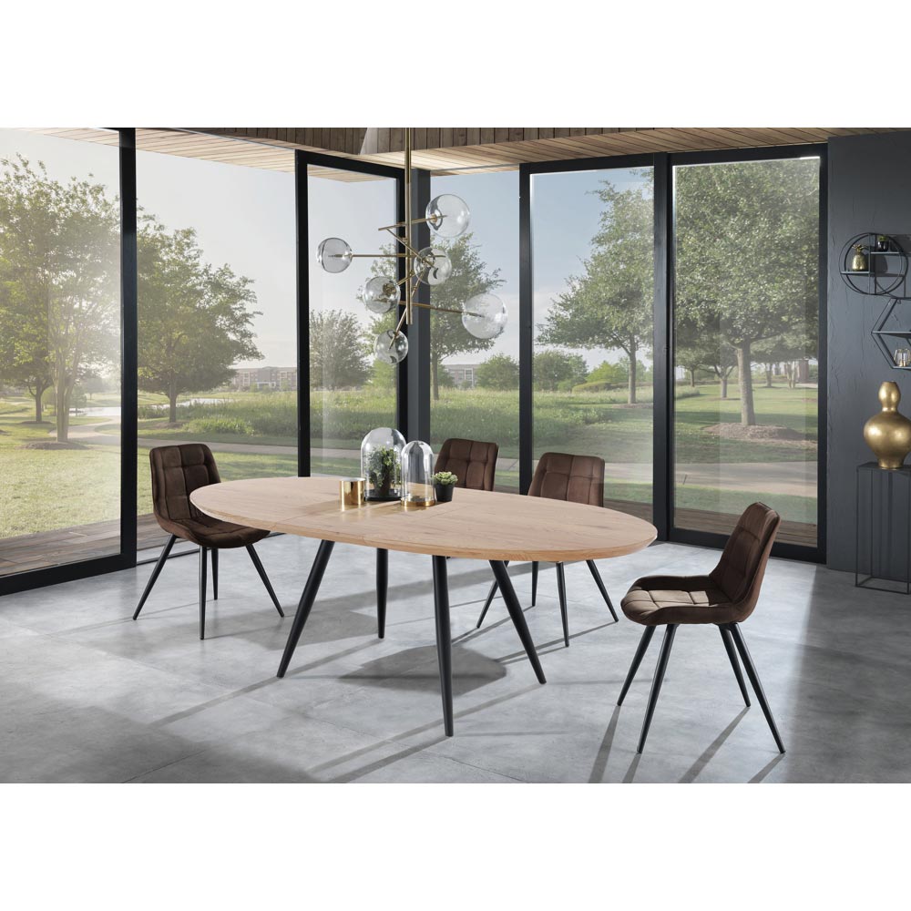 Tavolinë shtëpie me majë MDF të mbuluar me melaminë lisi me finiturë 4 mm , bazë prej metali të lyer me ngjyrë të zezë mat dhe shtrirje të vendosur nën pjesën e sipërme, tërësisht . Ky produkt është ideja perfekte për të gjithë ata që duan t'i japin dhomës një ngjyrim moderniteti dhe freskie , qoftë dhomë ndenje, kuzhinë apo ambient me kontratë. Materialet e zgjedhura për ndërtimin janë cilësore për t'i garantuar klientit një tavolinë jo vetëm të bukur për t'u parë, por edhe funksionale dhe rezistente , e cila çliron gjithë mjeshtërinë e saj.