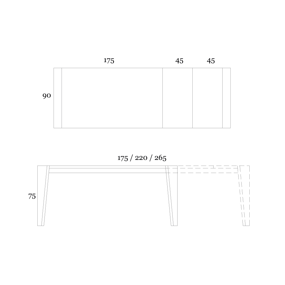gjatësia: 175/220/265 cm x thellësia: 90 cm x lartësia: 75 cm - 2 zgjatime