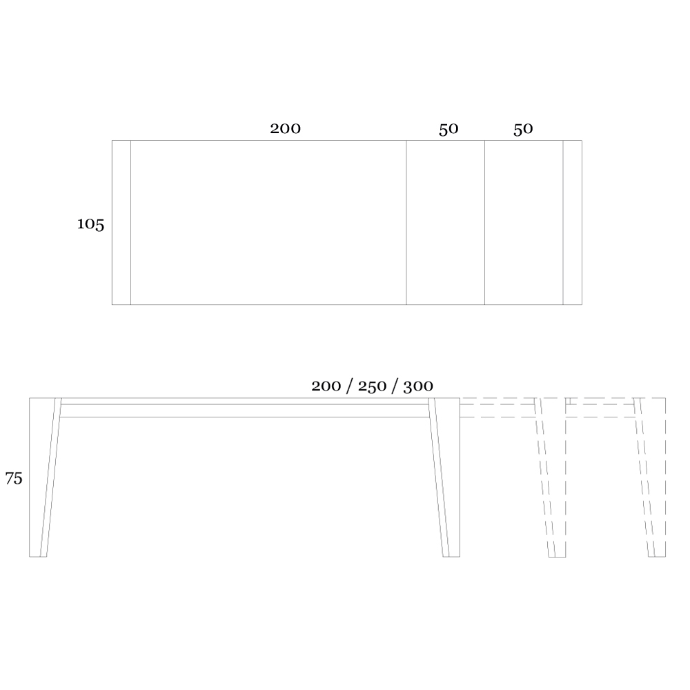 gjatësia: 200/250/300 cm x thellësia: 105 cm x lartësia: 75 cm - 2 zgjatime