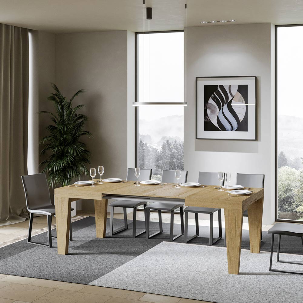 Tavolinë ngrënieje e zgjatur e bërë nga mikrogrimca druri , tërësisht Prodhuar në Itali.