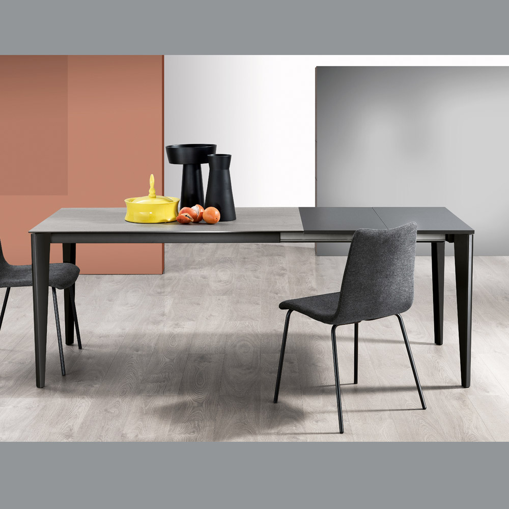 Kjo tryezë e zgjatur është një simbol i funksionalitetit dhe stilit. Sipërfaqja çiftëzohet në mënyrë diskrete me çdo skemë ngjyrash, ndërsa mekanizmi i zgjerimit përfaqëson shprehjen përfundimtare të shkathtësisë . Pavarësisht nëse është një darkë intime apo një mbrëmje e gjallë me miqtë dhe familjen, kjo tryezë është e përshtatshme për çdo rast.