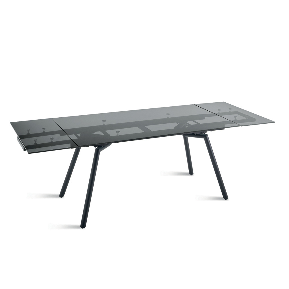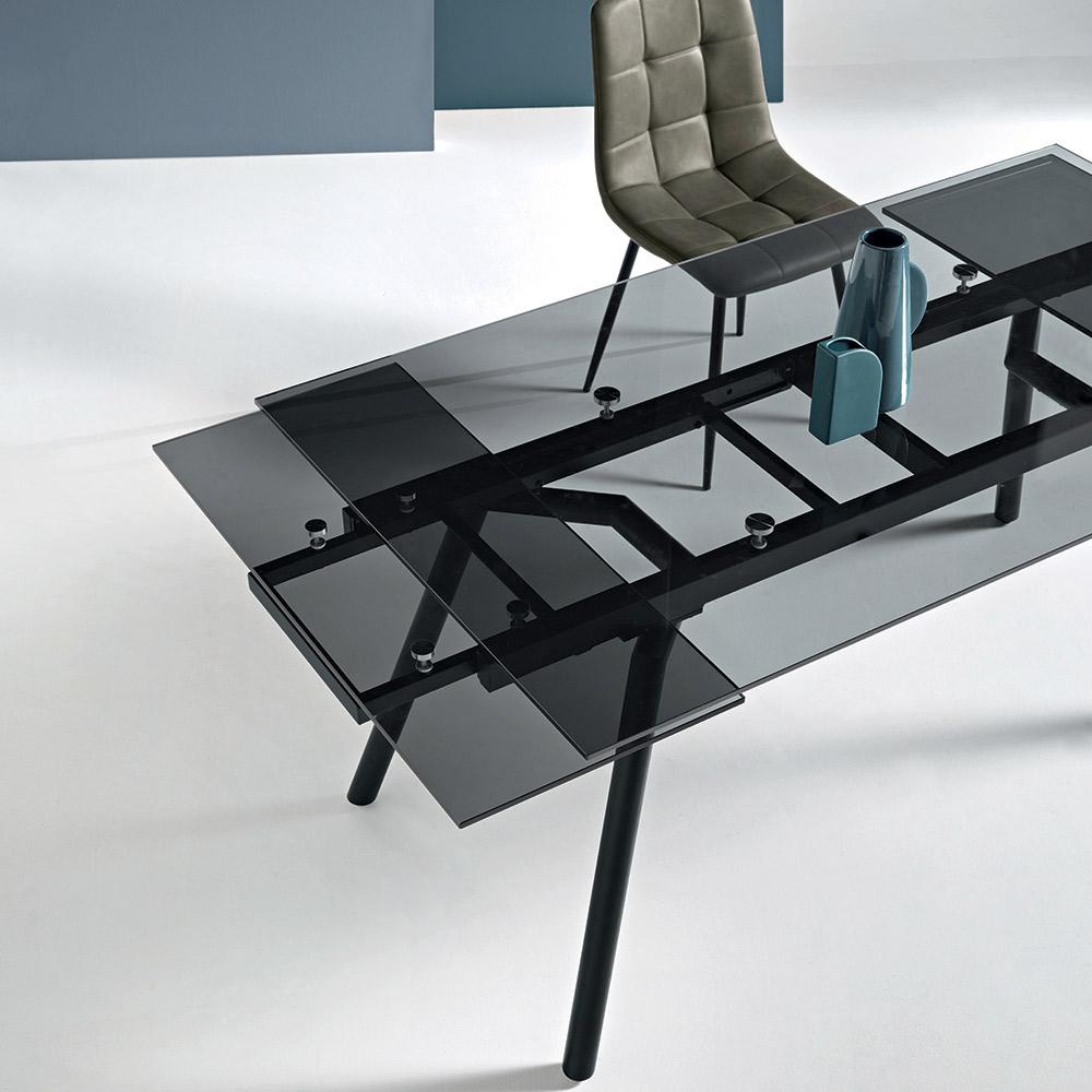 Një tavolinë ngrënieje elegante dhe moderne e zgjerueshme , ideale për të mobiluar me stil dhomën tuaj të ngrënies ose dhomën e ndenjes . Sipërfaqja prej qelqi të tymosur i shton shkëlqim dhe lehtësi vizuale hapësirës, ndërsa baza metalike e lyer me të zezë siguron stabilitet dhe qëndrueshmëri, duke krijuar një ekuilibër të përsosur midis estetikës bashkëkohore dhe funksionalitetit.
