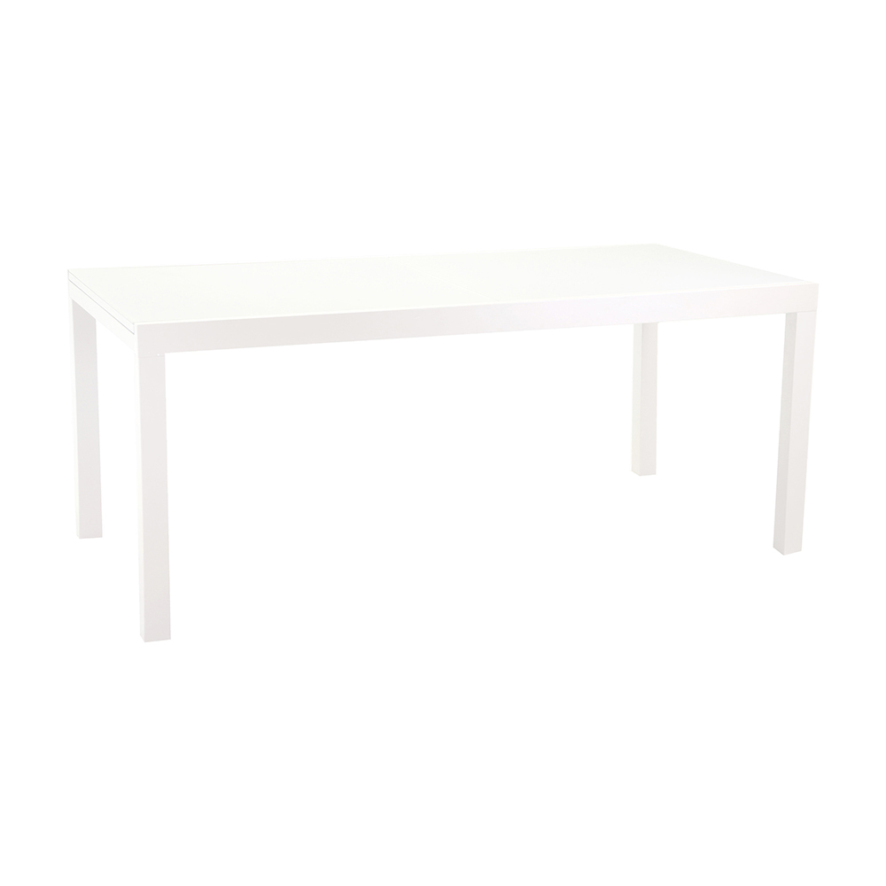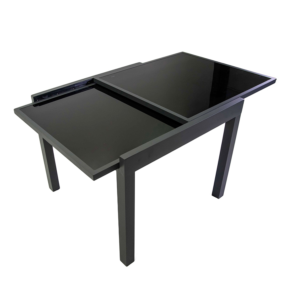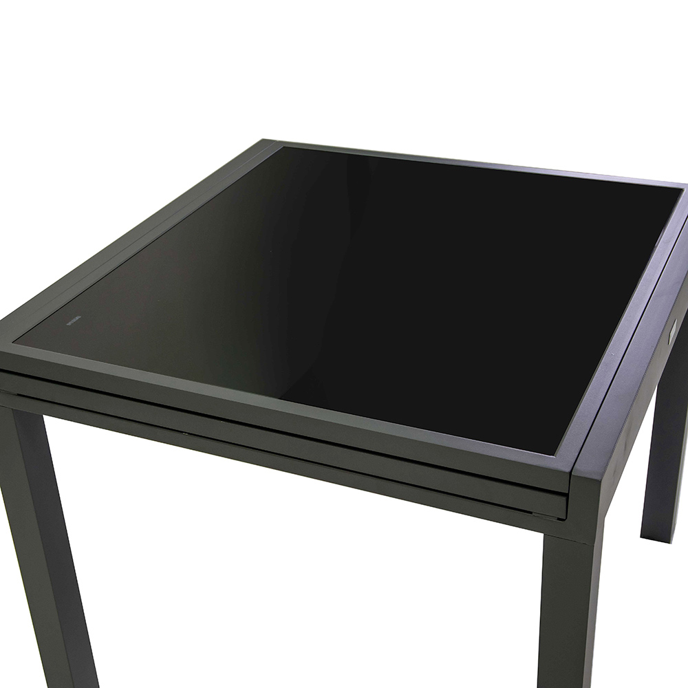 Kjo tavolinë e zgjatur prej alumini me majë xhami të temperuar është ideale për ata që kërkojnë funksionalitet dhe stil në një produkt të vetëm. Kjo tavolinë elegante dhe moderne shquhet për dekorimin e saj që përshtatet në mënyrë perfekte si me ambientet e brendshme ashtu edhe me ato të jashtme.