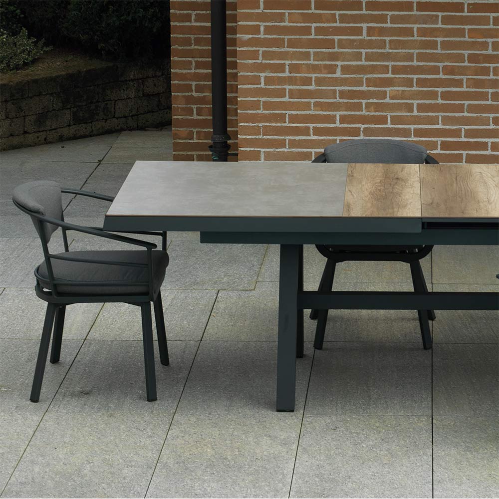 Sistemi automatik i zgjerimit qendror e bën këtë tabelë jashtëzakonisht praktike, duke ju lejuar ta përshtatni lehtësisht me numrin e të ftuarve. Kjo veçori, e kombinuar me dizajnin e saj të pastër dhe ndërtimin e fortë, e bën tryezën një shtesë të domosdoshme për këdo që pëlqen të argëtohet jashtë.