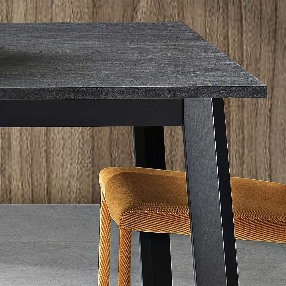 Tavolina e ngrënies tërësisht e prodhuar në Itali e përbërë nga një strukturë melamine me finiturë grafiti, këmbë në dru të fortë ahu të lakuar me grafit mat dhe sipërme melamine të zgjatshme (22 mm e trashë). Një aksesor mobilimi i projektuar me kujdes për të shprehur sa më mirë tendencat aktuale në fushën e mobiljeve dhe jetës së përditshme. Një estetikë jashtëzakonisht e pasur, ku çdo element mishëron karakteristika unike, në emër të një stili gjithmonë të rafinuar, inovativ dhe asnjëherë banal. Aspekti themelor është ekuilibri i përsosur midis dizajnit dhe prakticitetit, i cili garanton një ndikim shumë të fortë në çdo kontekst.
