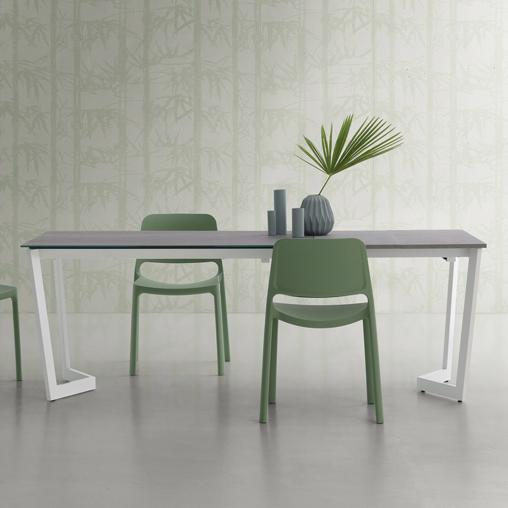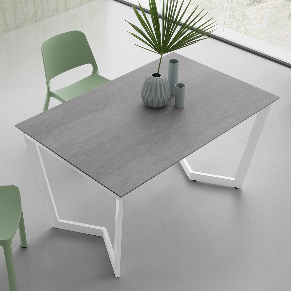 Tavolinë kuzhine e zgjatur në qeramikë laminam me bazë metalike Prodhuar në Itali.