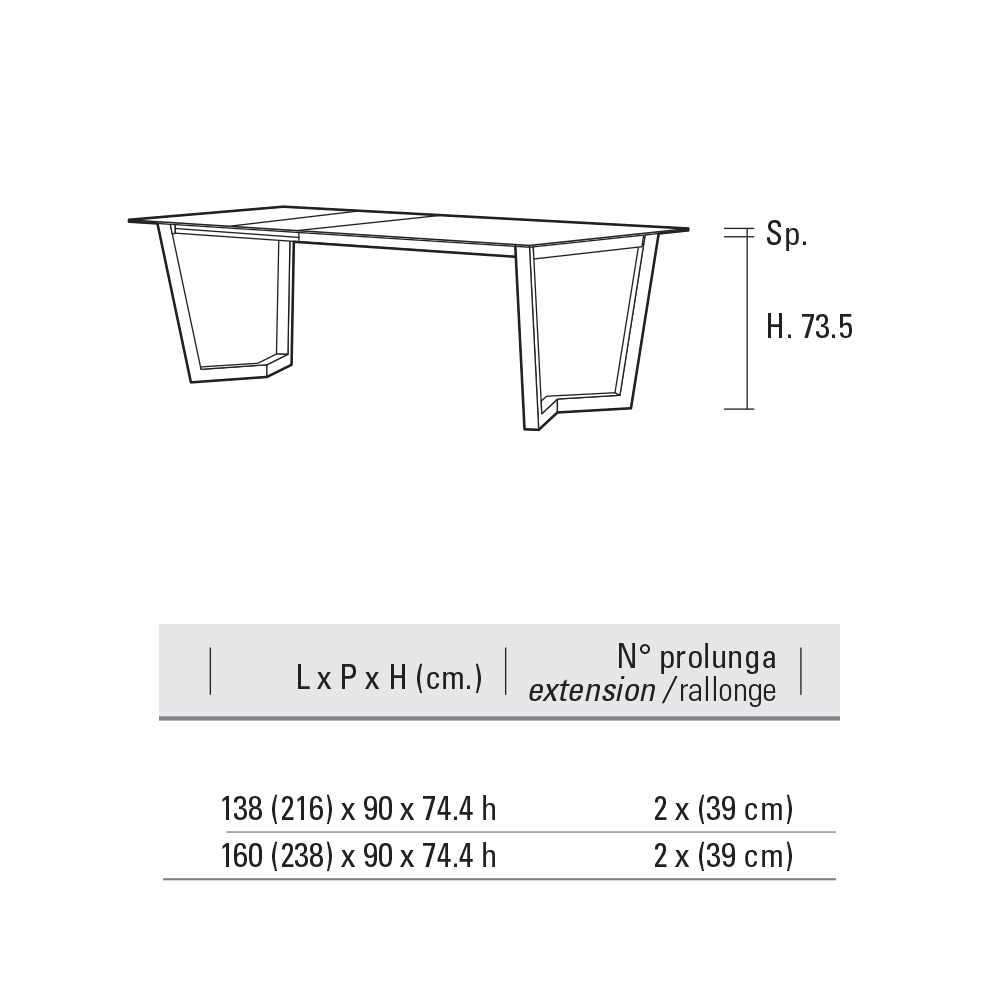 Madhësitë e disponueshme:- W 138/216 x 90 x Lartë 74,4 cm;