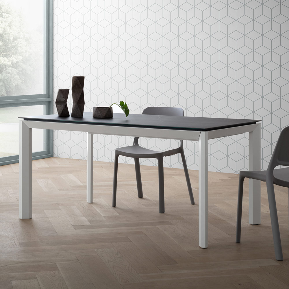 Tavolinë ngrënieje e zgjatur deri në 240 cm në laminam qeramike dhe alumini Prodhuar në Itali.