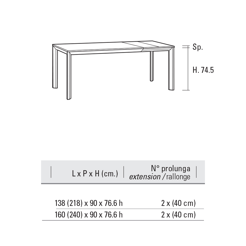 Madhësitë e disponueshme:- W 138/218 x 90 x Lartë 76,5 cm;