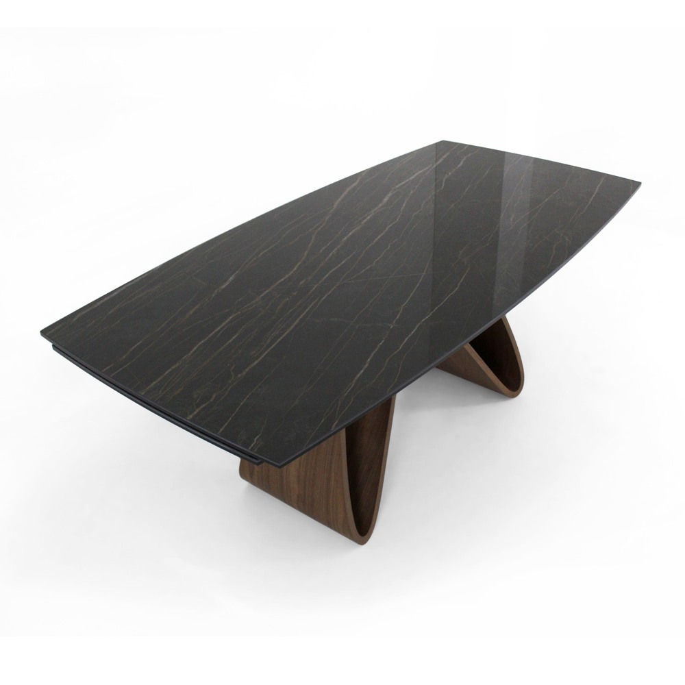 Tavolinë fuçie e zgjatur e dhomës së ndenjes me zgjatime të integruara, majë qeramike , buzë të drejtë , bazë në rimeso arrre kanaletto dhe këmbë të rregullueshme. Falë formës së bazës dhe përfundimit të pjesës së sipërme, tavolina është e aftë t'i japë një prekje lëvizjeje dhe elegance çdo ambienti të përditshëm dhe kontraktues. Materialet garantojnë funksionalitet dhe prakticitet për të patur një produkt jo vetëm shumë të bukur nga ana vizuale por edhe i përdorshëm në çdo rast.