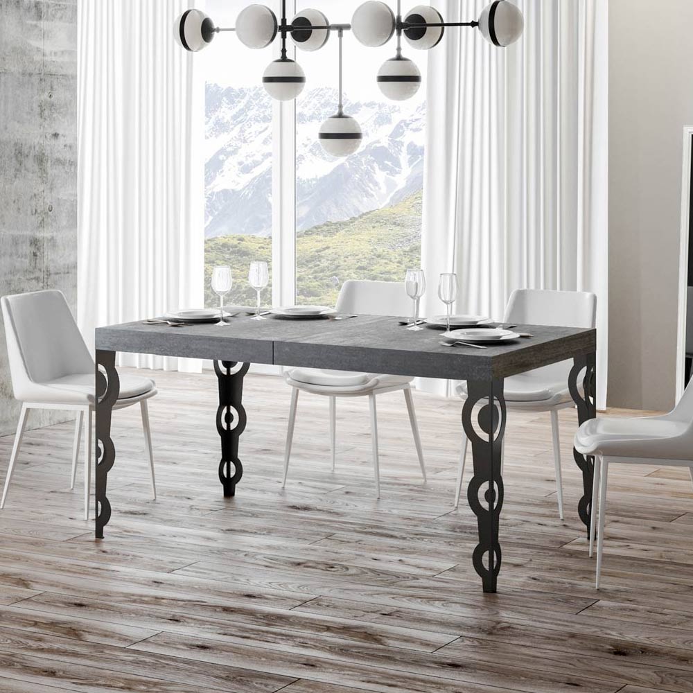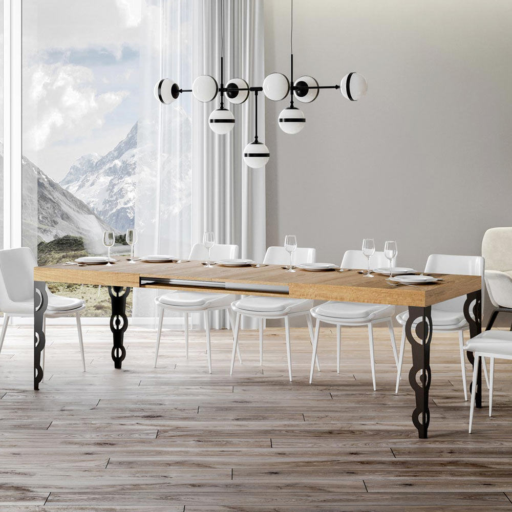 Kjo tavolinë e zgjatur ndërthur hijeshinë e lashtë të dizajnit dekorativ me funksionalitetin modern. Këmbët e skalitura prej hekuri përmbajnë motive të ndërlikuara barok , një detaj që do të bie në sy.