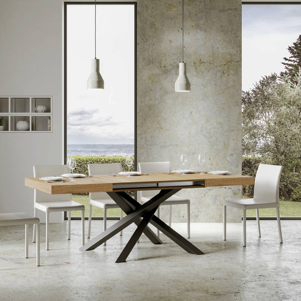 Tavolinë e zgjatur në mikrogrimca druri dhe hekuri e prodhuar në Itali