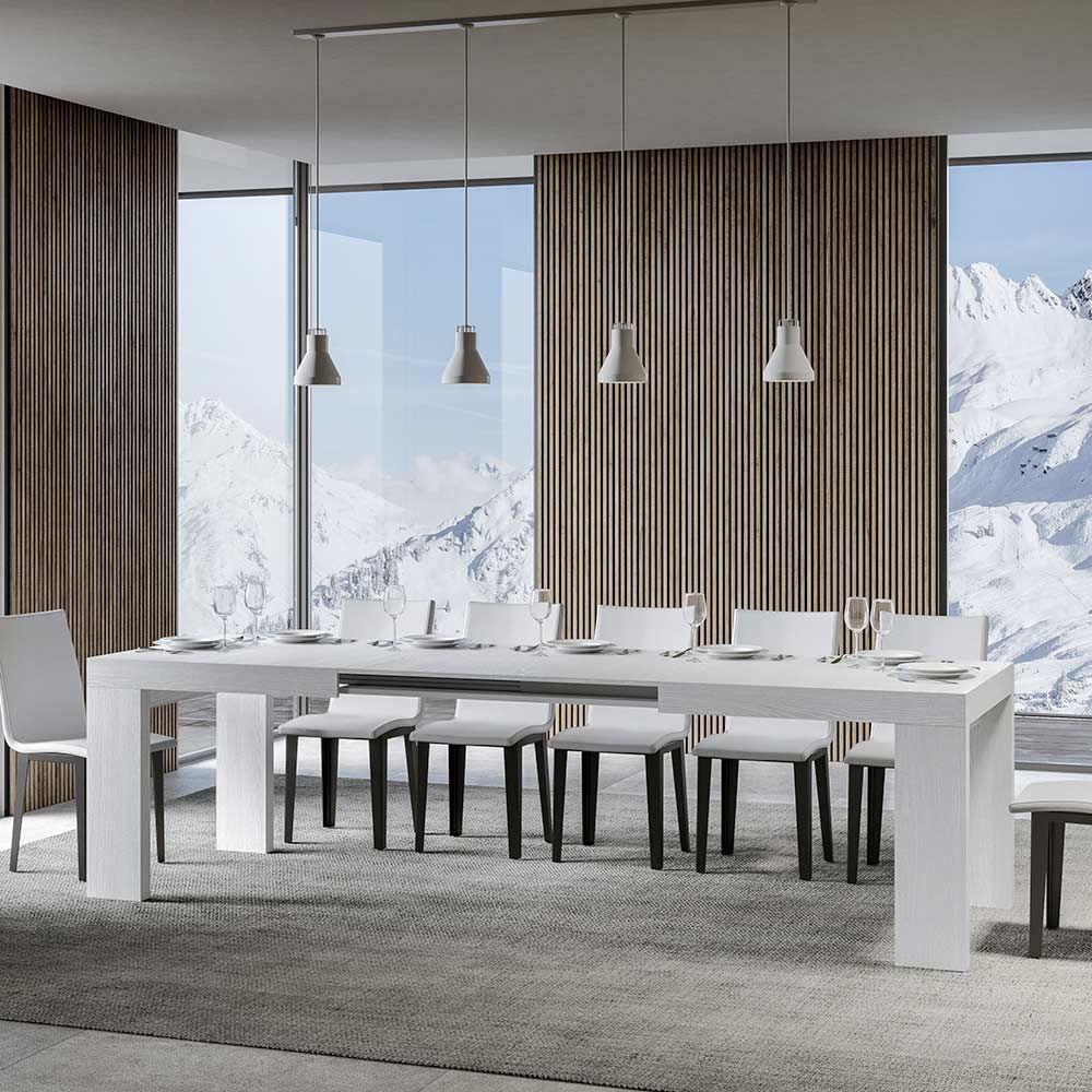 Tavolinë e zgjerueshme në mikrogrimca druri e prodhuar në Itali