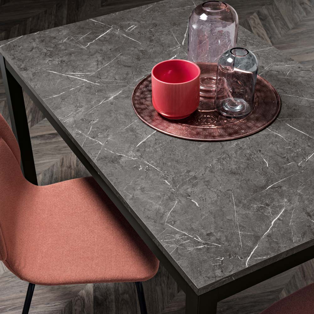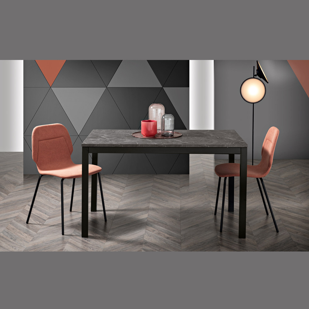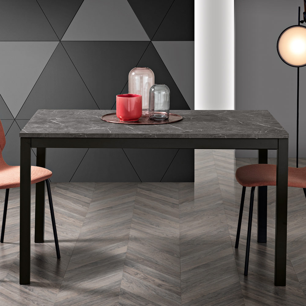 Prodhuar në Itali. Zbuloni sharmin bashkëkohor dhe sofistikimin e përjetshëm të kësaj tavoline ngrënieje . Një sipërfaqe madhështore melamine e mbështetur nga një strukturë e fortë me këmbë metalike elegante . Shndërroni çdo vakt në një rast të veçantë.