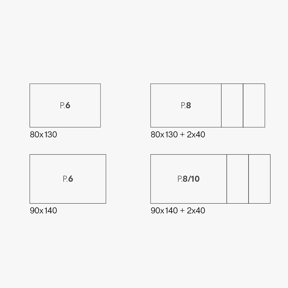 Madhësitë e disponueshme:- gjatësia 130/210 cm x thellësia 80 cm x lartësia 75,5 cm - 2 zgjatime 40 cm
